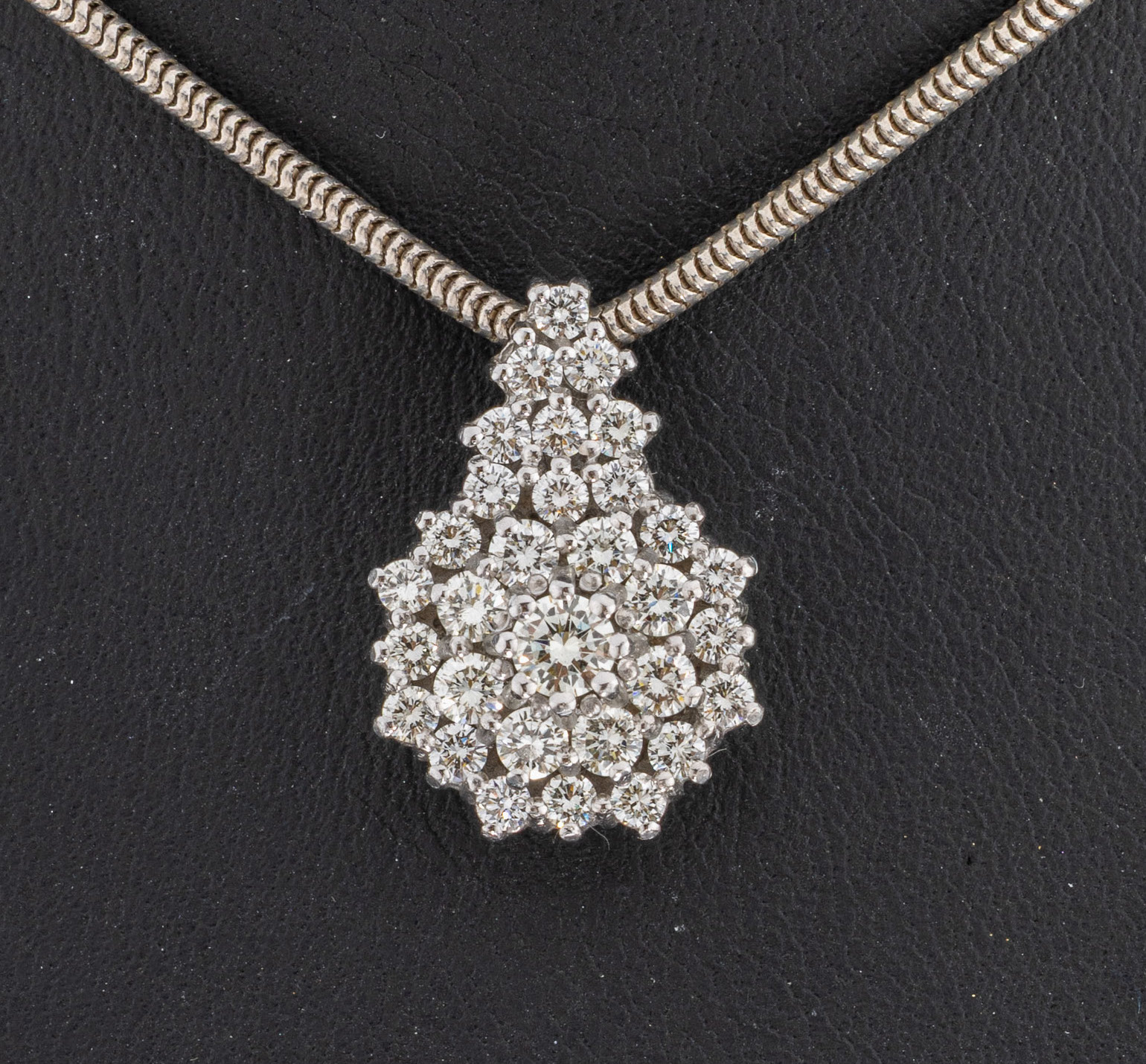 zus. ca. 1.15 ct l.get.Weiß/if, (lt. Schmuckpass), L. ca. 2 cm, an Kette, 925er
