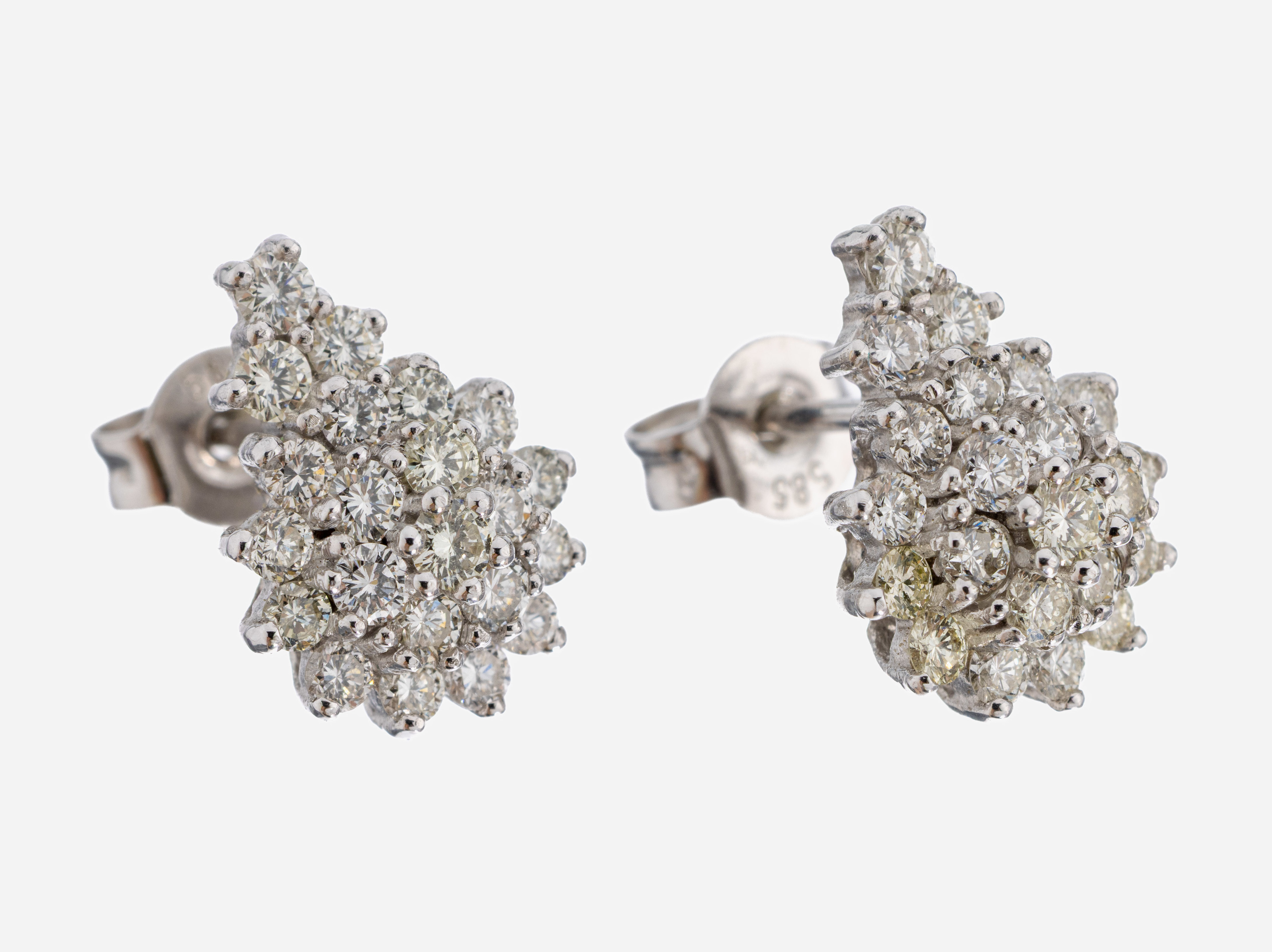 Paar 14 kt Gold Brillant-Ohrstecker, WG 585/000, Aufbau in mehreren Ebenen, 44 Brillanten