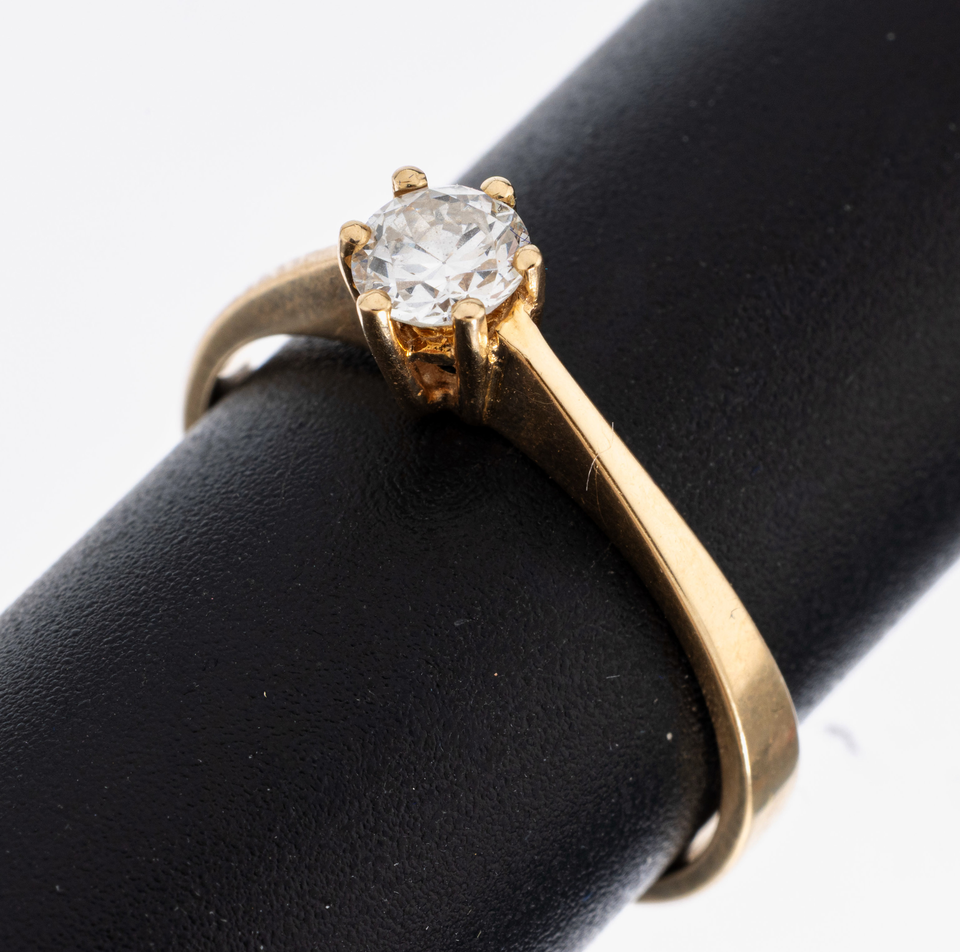 14 kt Gold Brillant-Ring, GG 585/000, Brillant ca. 0.35 ct Weiß/si, RW 56, ca. 2.6