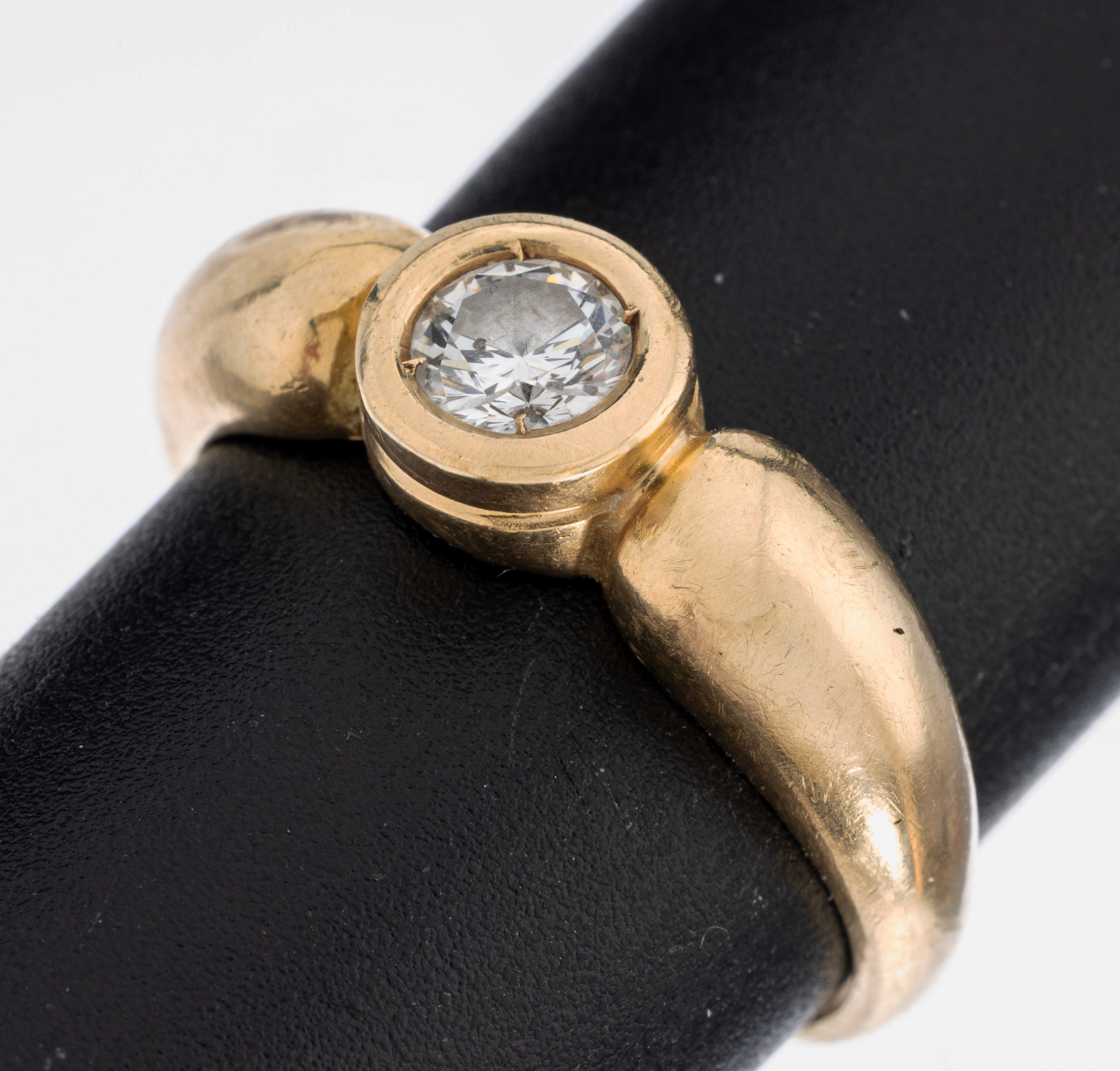 14 kt Gold Brillant-Ring, GG 585/000, Brillant ca. 0.40 ct Weiß/p1, RW 59, ca. 4.8