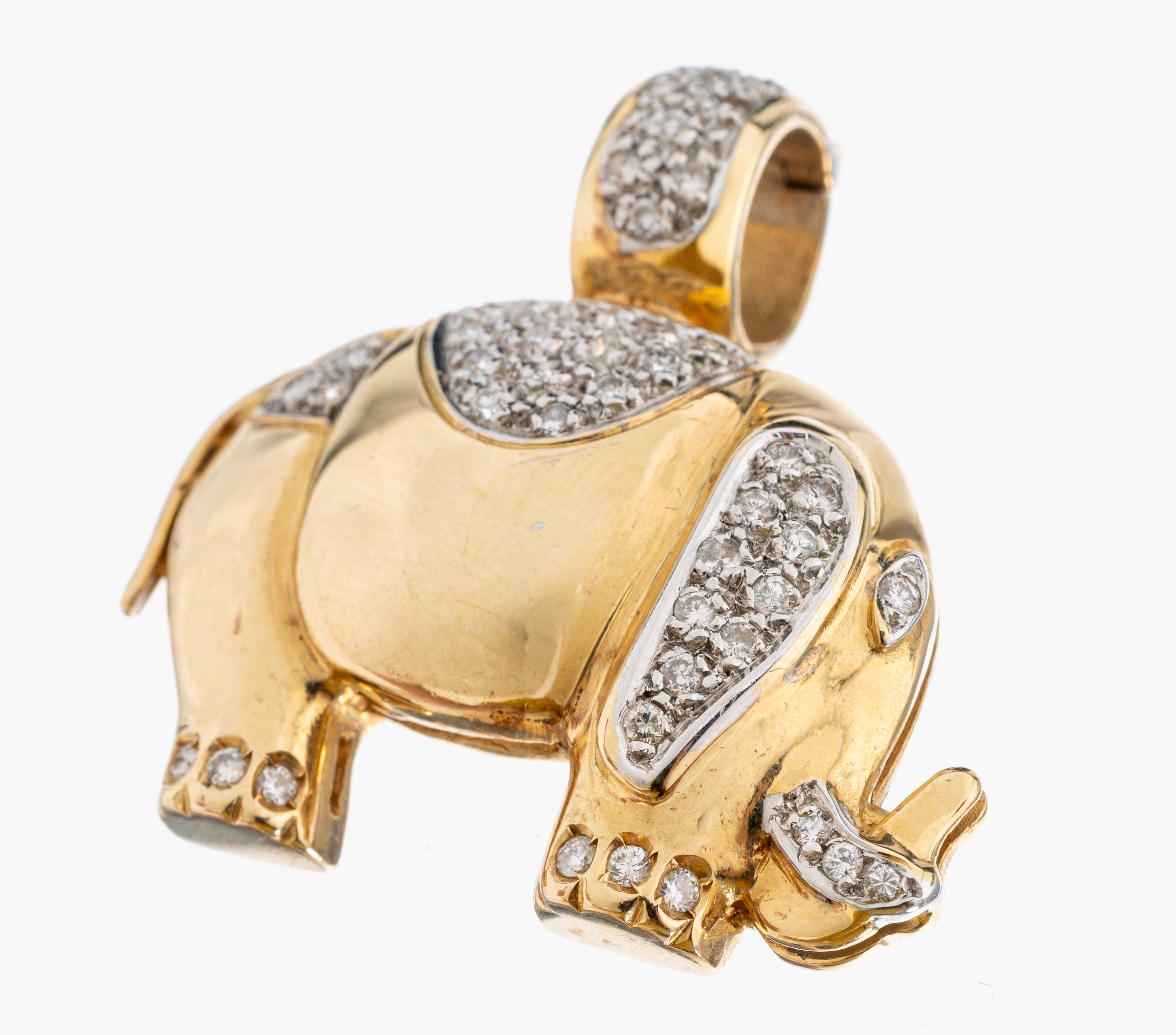 14 kt Gold Brillant-Clipanhänger, GG/WG 585/000, Darstellung eines Elefanten, 47