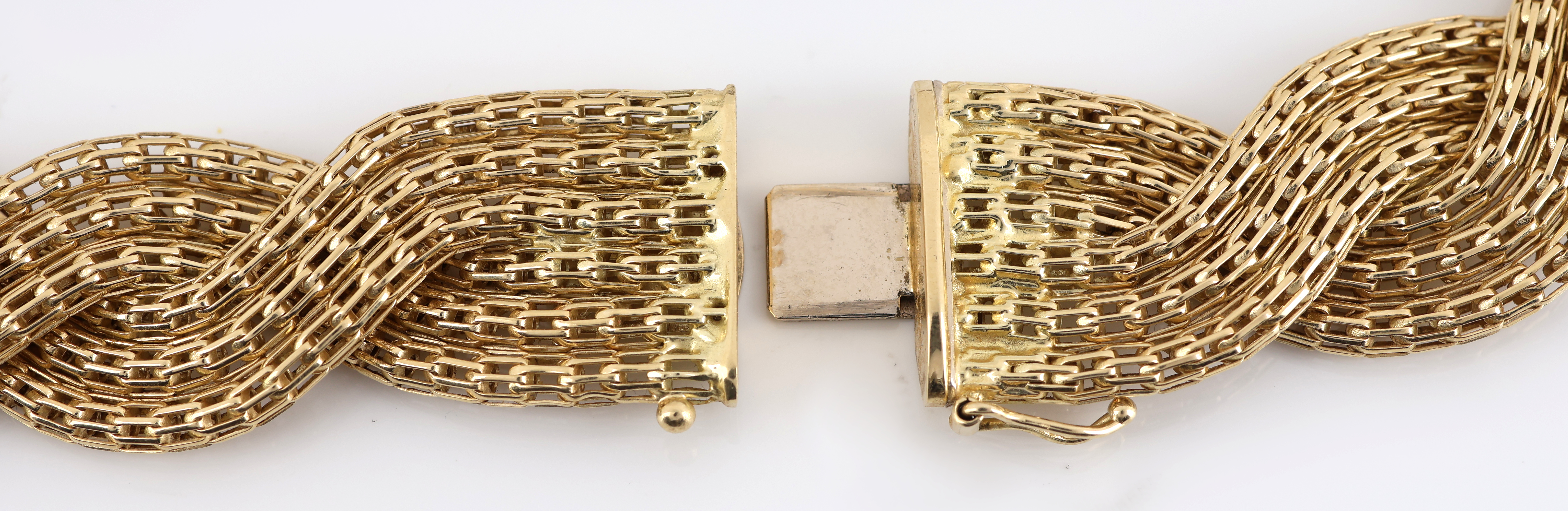 18 kt Gold Collier, GG 750/000, aufwändige Arbeit, 2 3-rhg. Stränge, B. ca. 1.8