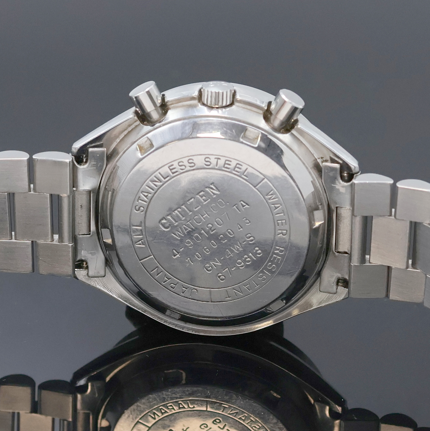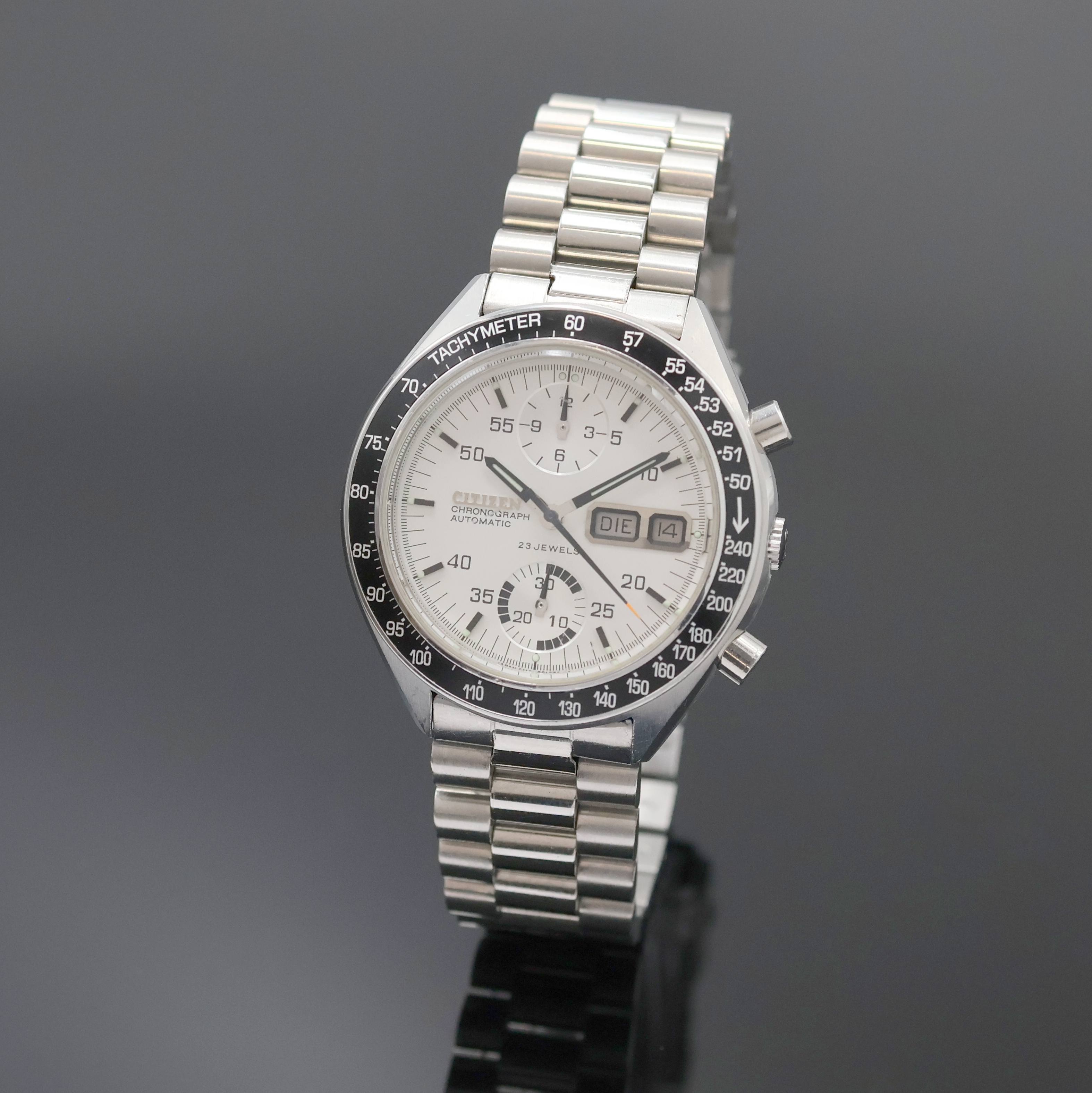 CITIZEN Armbandchronograph mit Flyback in Stahl Referenz 67-9313, Japan um 1980,
