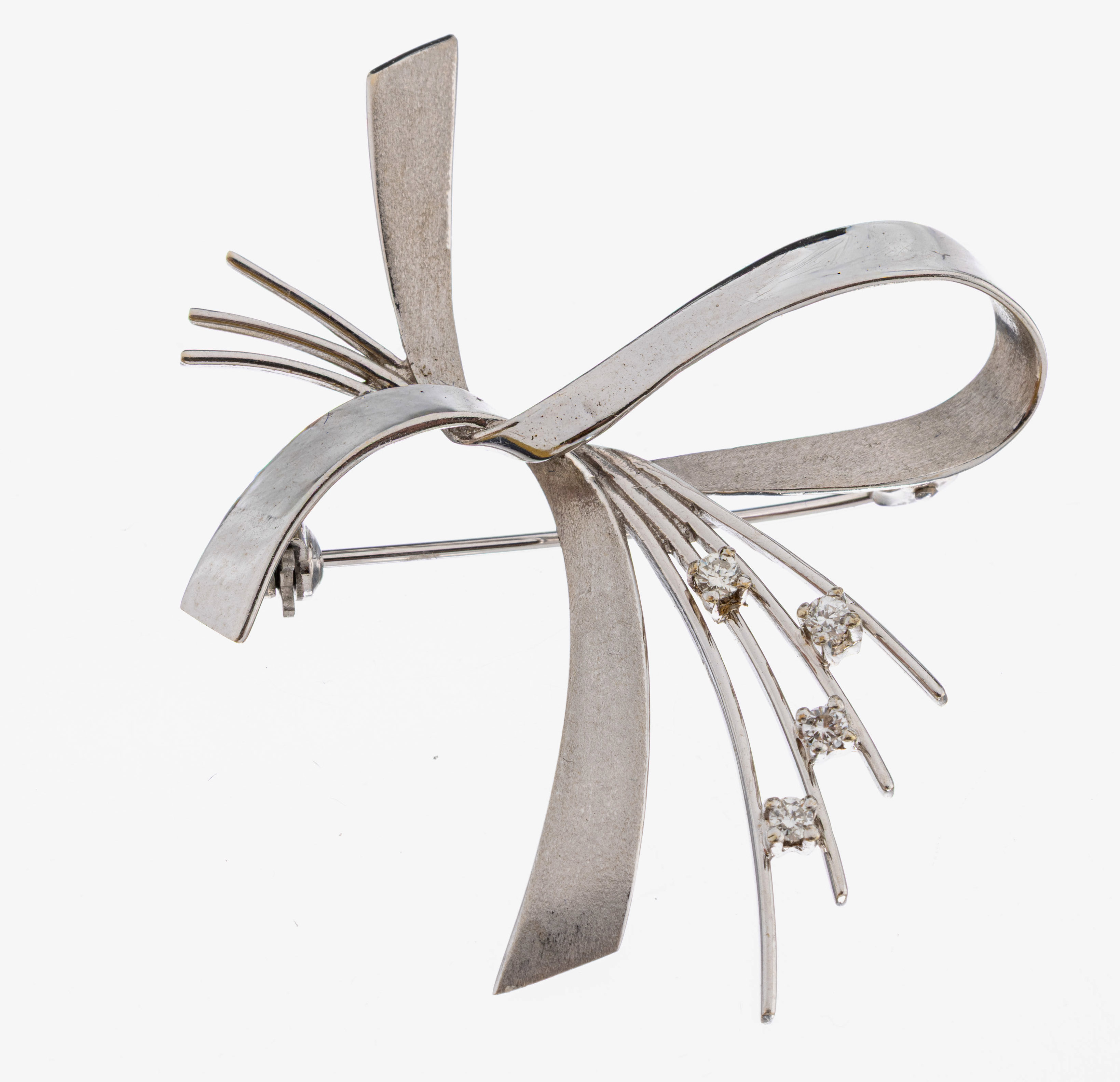 14 kt Gold Brillant-Brosche, 1960er Jahre, WG 585/000, part. sat., geschwungen, 4