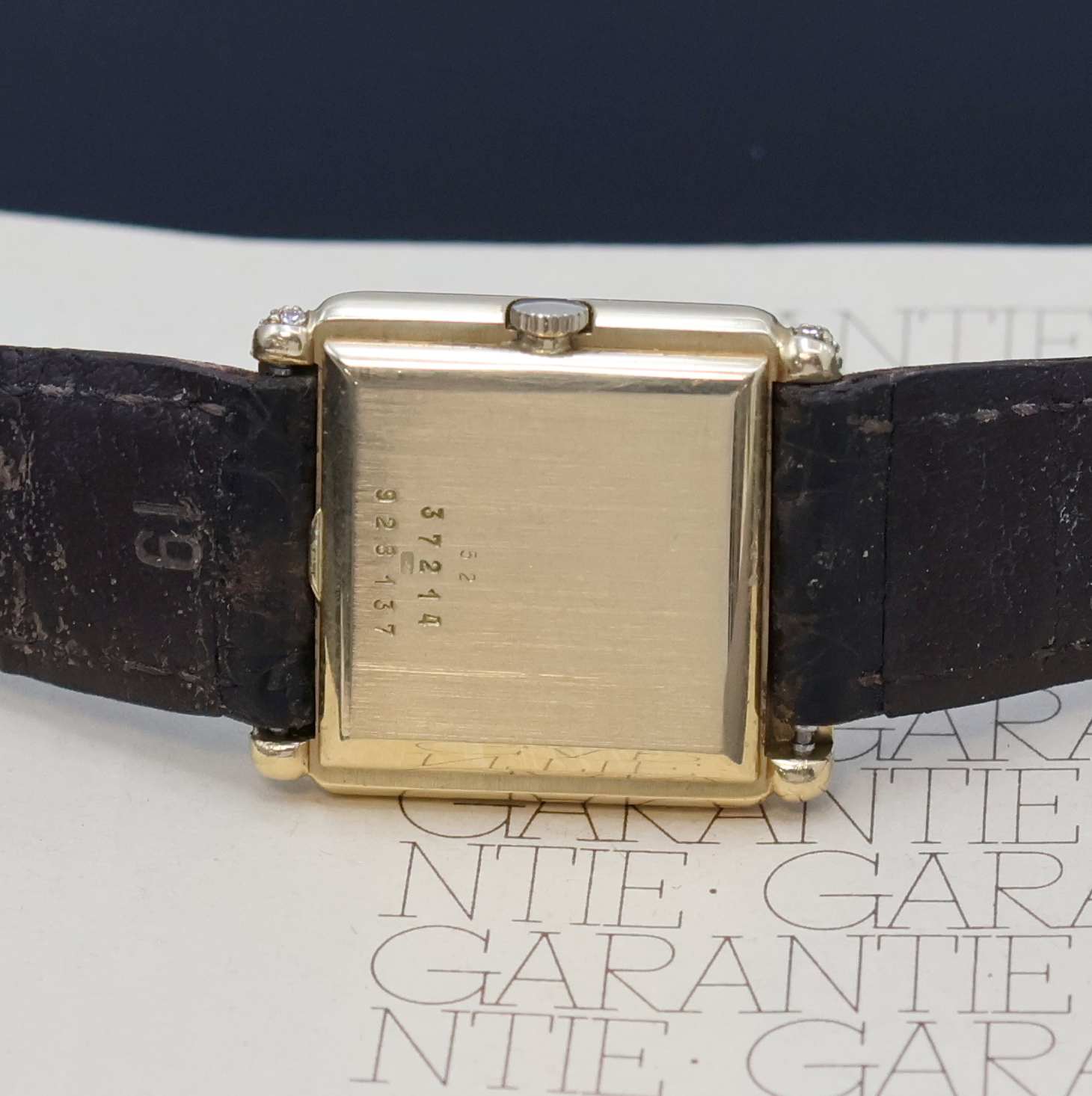 aufw. m. Diamanten bes., Zifferbl. m. gold. Std.-Ind. fl., verg. Werk Kal. 777, m.