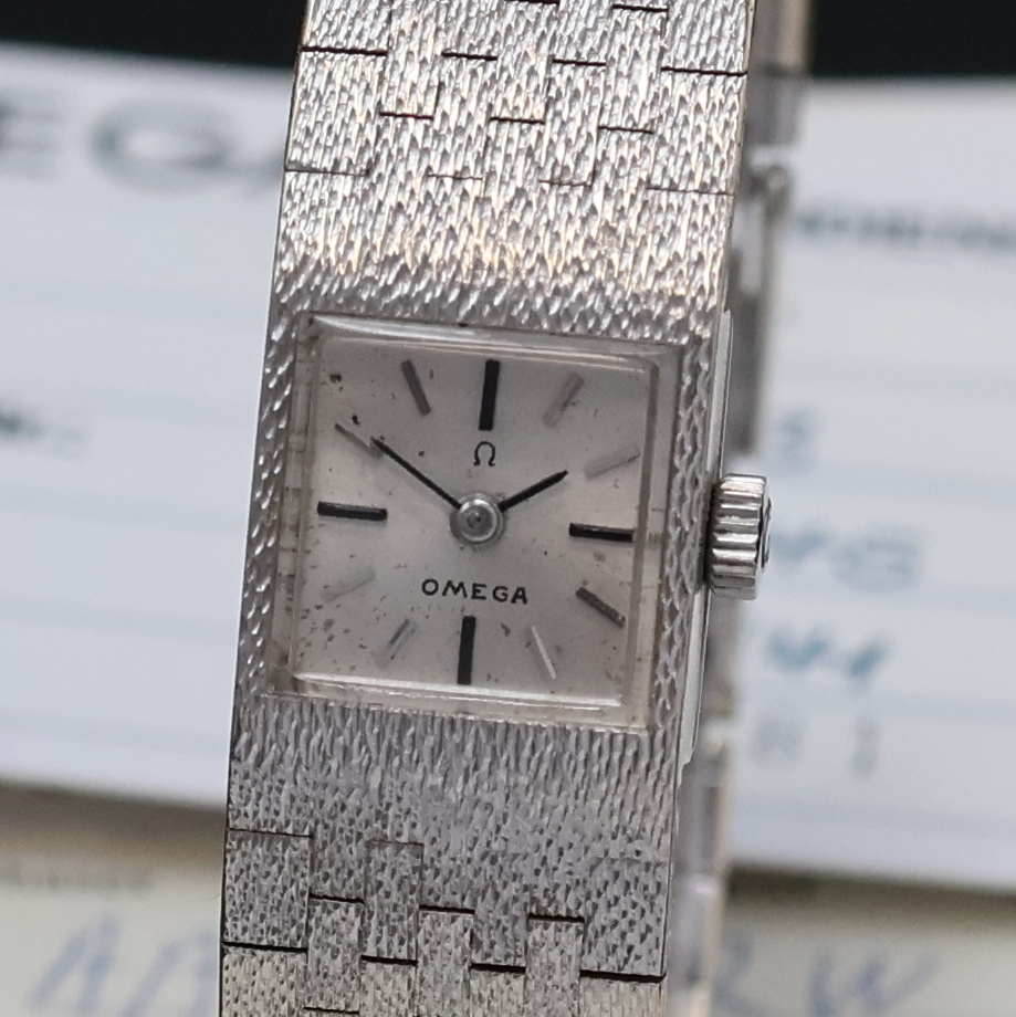 OMEGA Damenarmbanduhr in WG 585/000, Schweiz verk. lt. beil. Garantie 09/1976, Handaufzug,