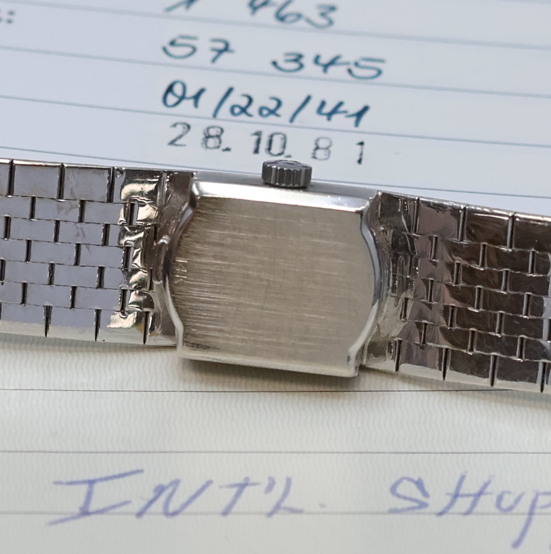 orig. Goldband, Boden aufgedr., silb. Zifferbl. m. aufges. Std.-Ind., geschw. Zeiger,
