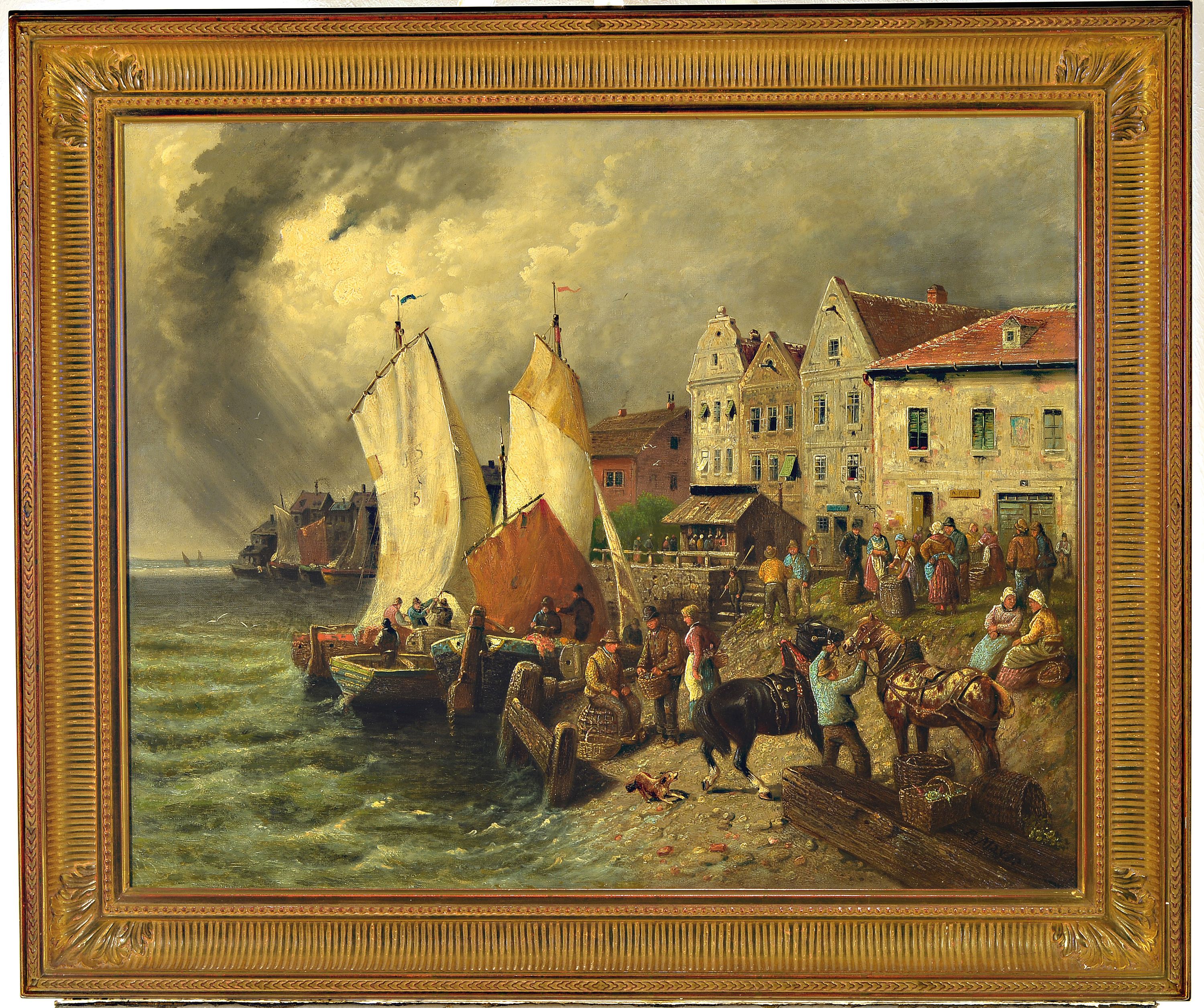 Figurenstaffage, rechts unten auf Planke signiert, A. Mayer, Öl/Lwd, restauriert