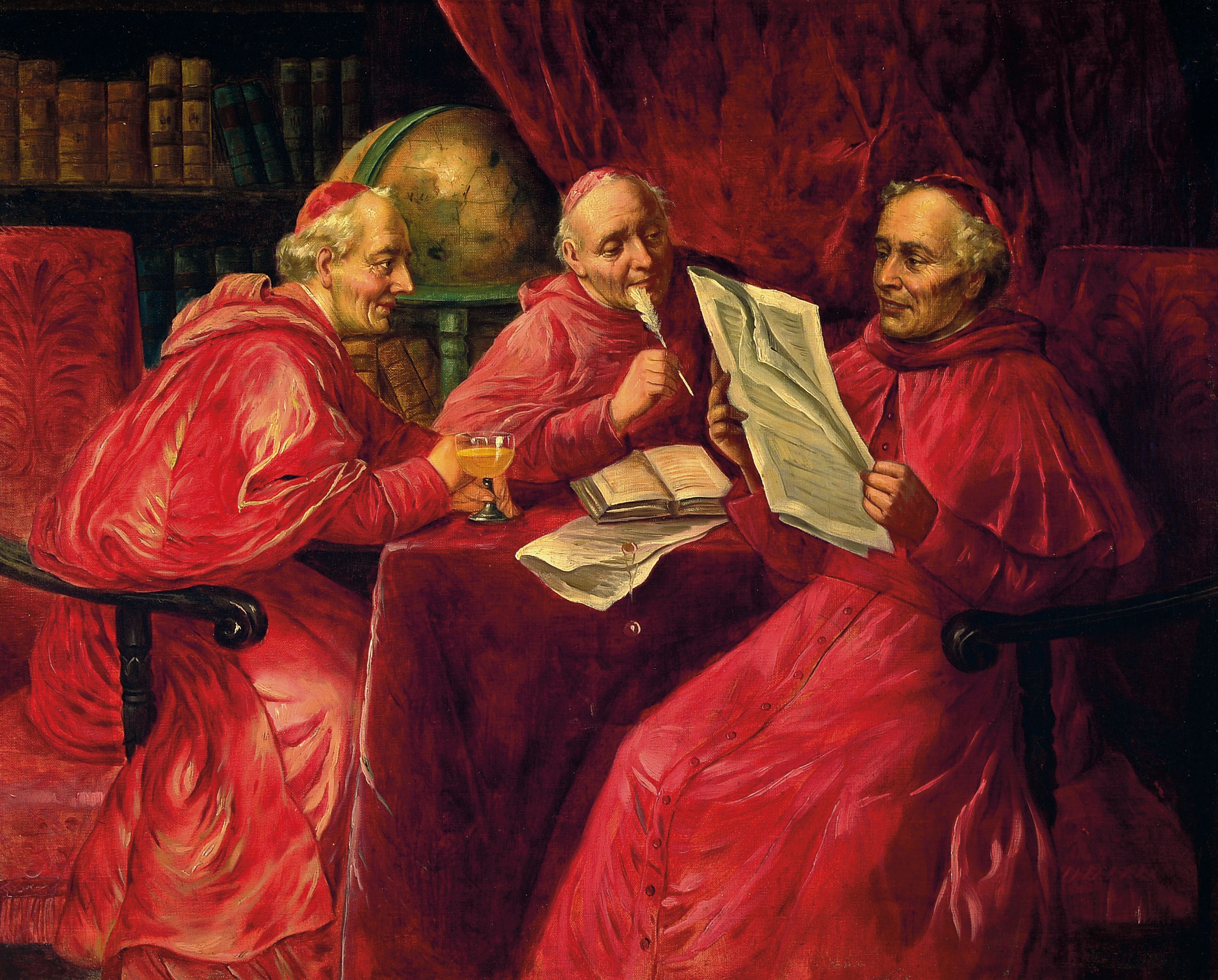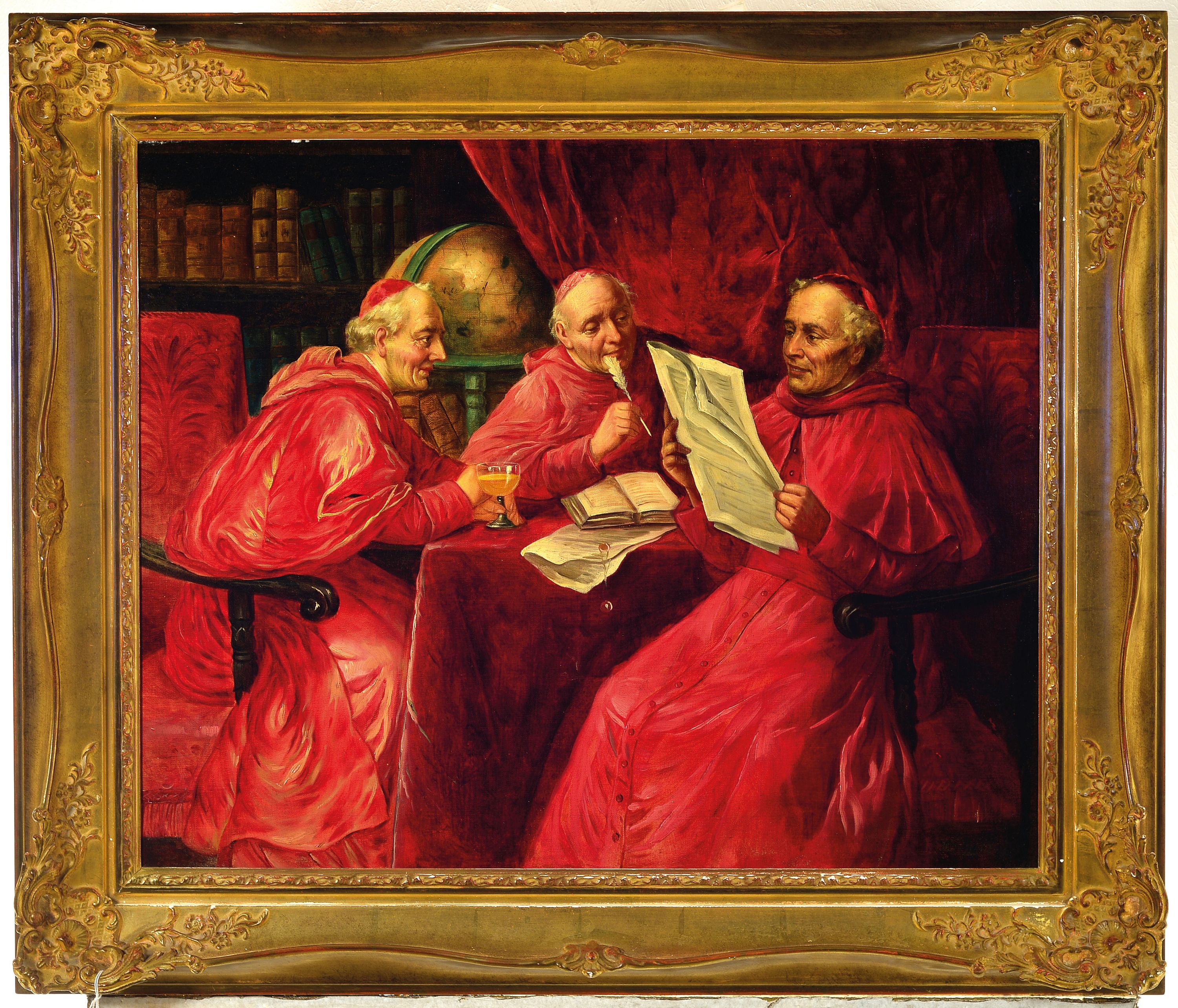 W. Lanz, Wiener Künstler des 19.Jh., erwähnt nach 1850, Drei Kardinäle im Gespräch,