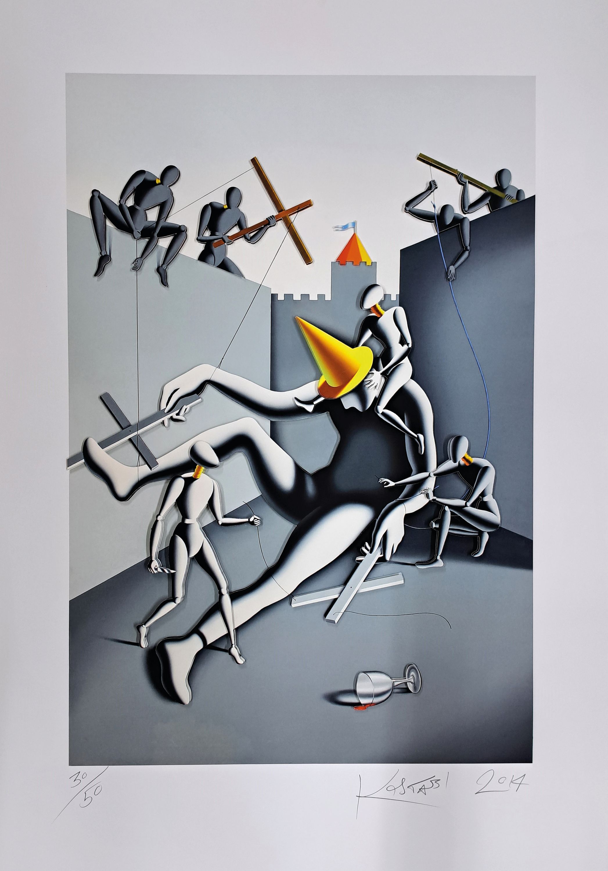 Mark Kostabi, geb. 1960, 3D-Konstruktion, Giclee/Papier, sign., num.30/50, dat.,