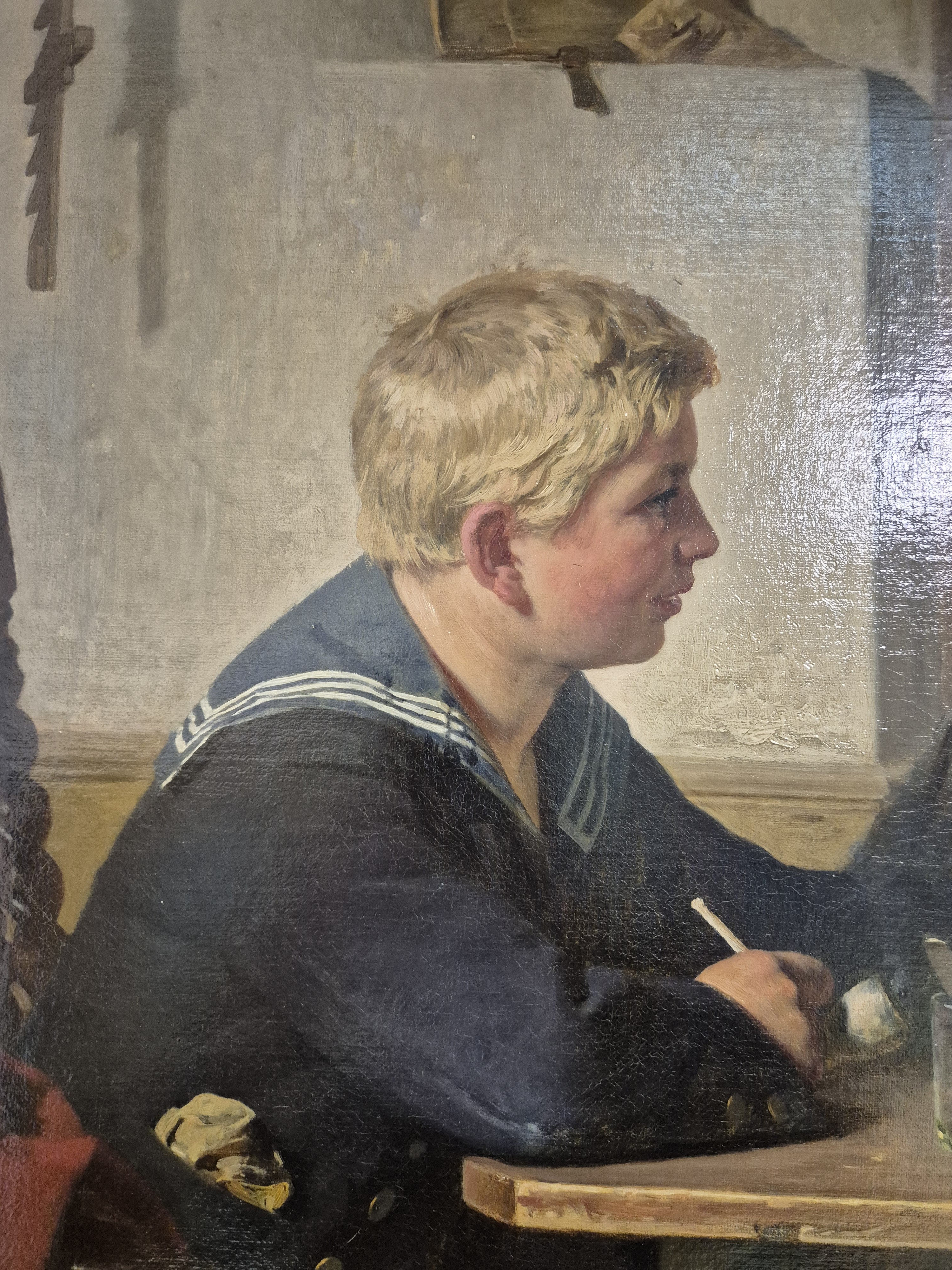vom Dienst bei der Marine heim und besucht Mutter und Schwester, Verweis auf das