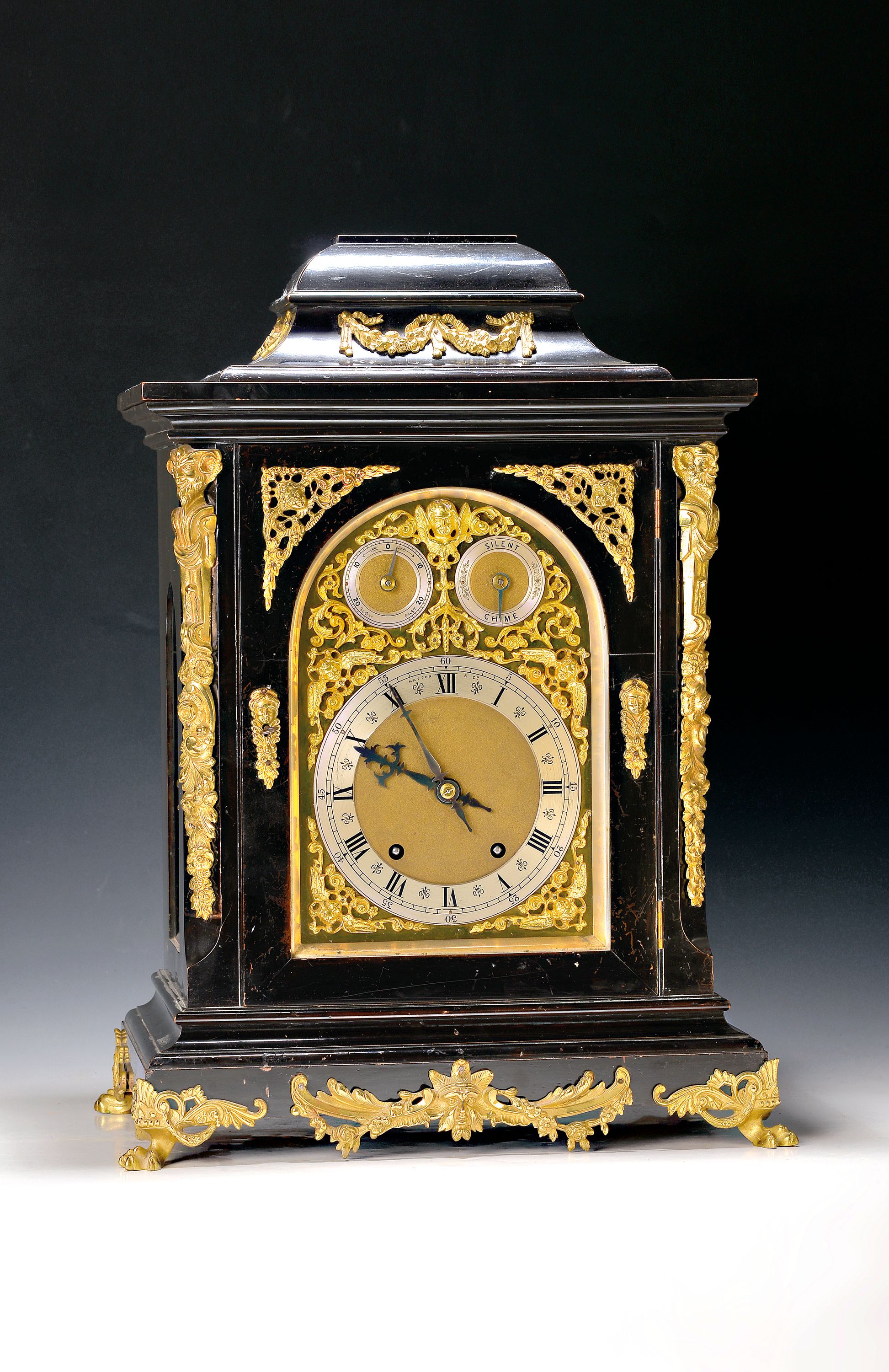 großes ebonisiertes Holzgehäuse (mit kleineren Fehlstellen), vergoldete Messingguß