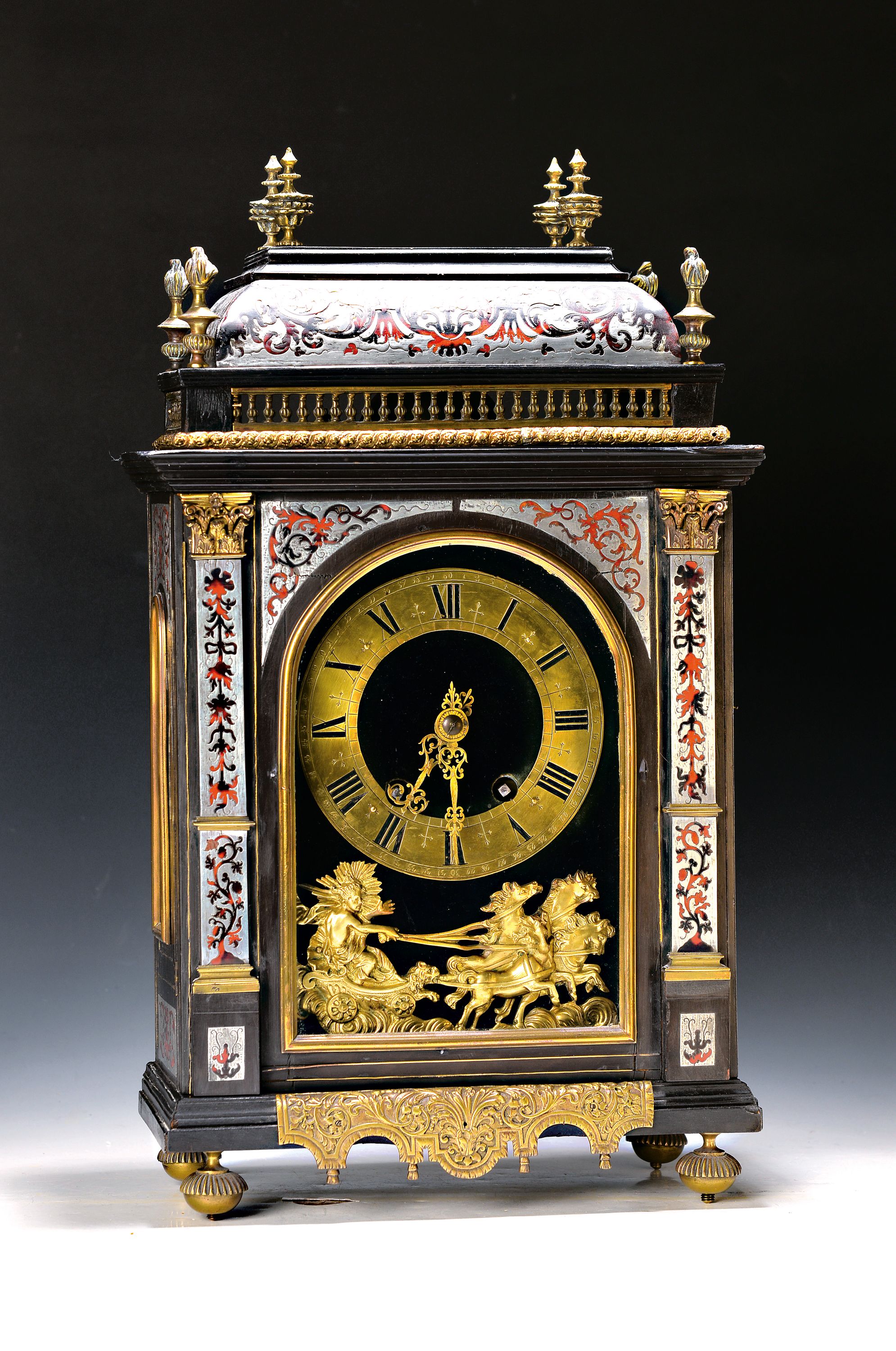 Technik mit Zinn und Schildpatt, seitlich verglast, rückseitig mit Messing verarbeitet,