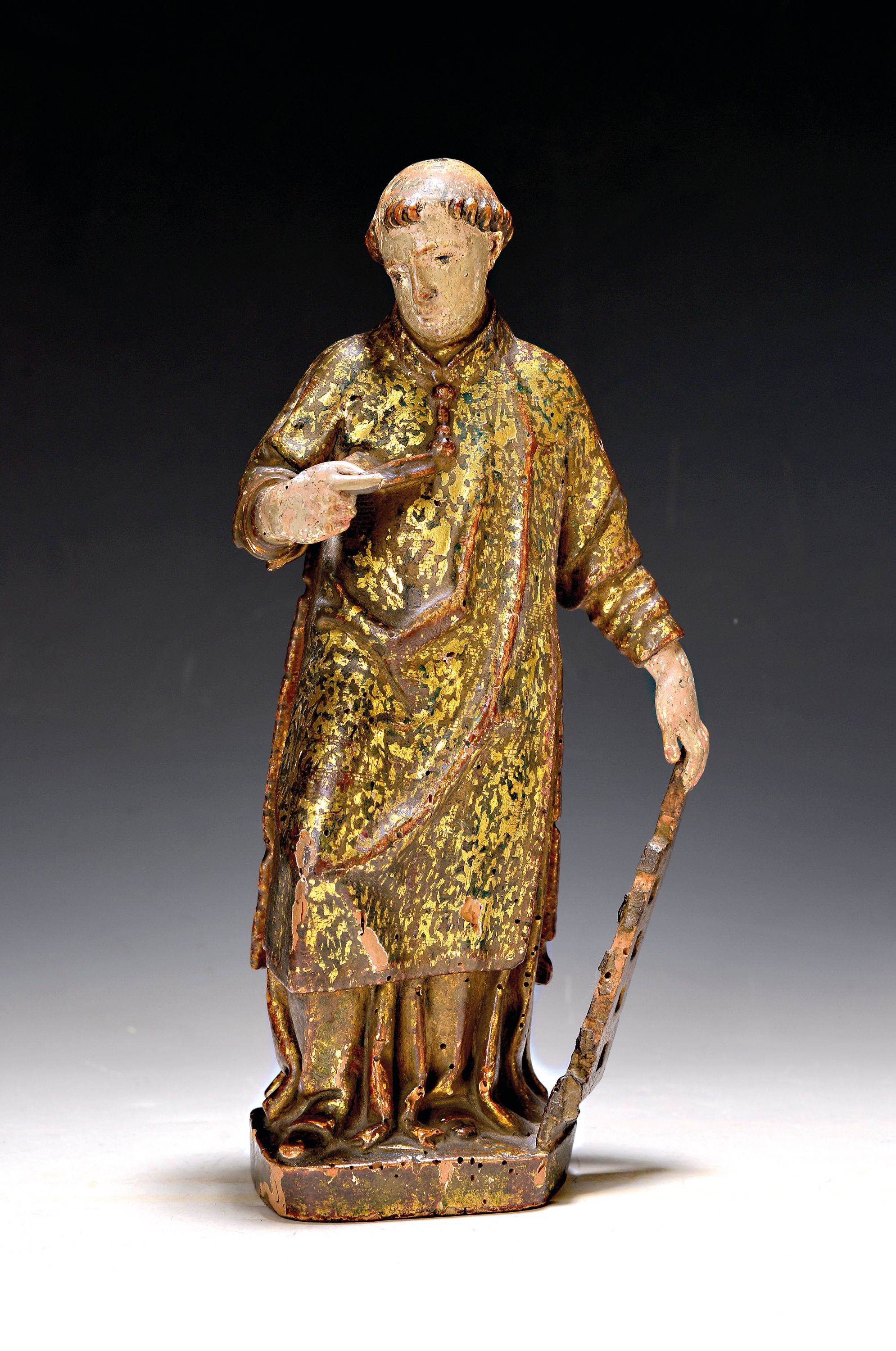 altersbedingt besch., Darstellung in Dalmatik als Diakon mit dem Rost als Marterinstrument,