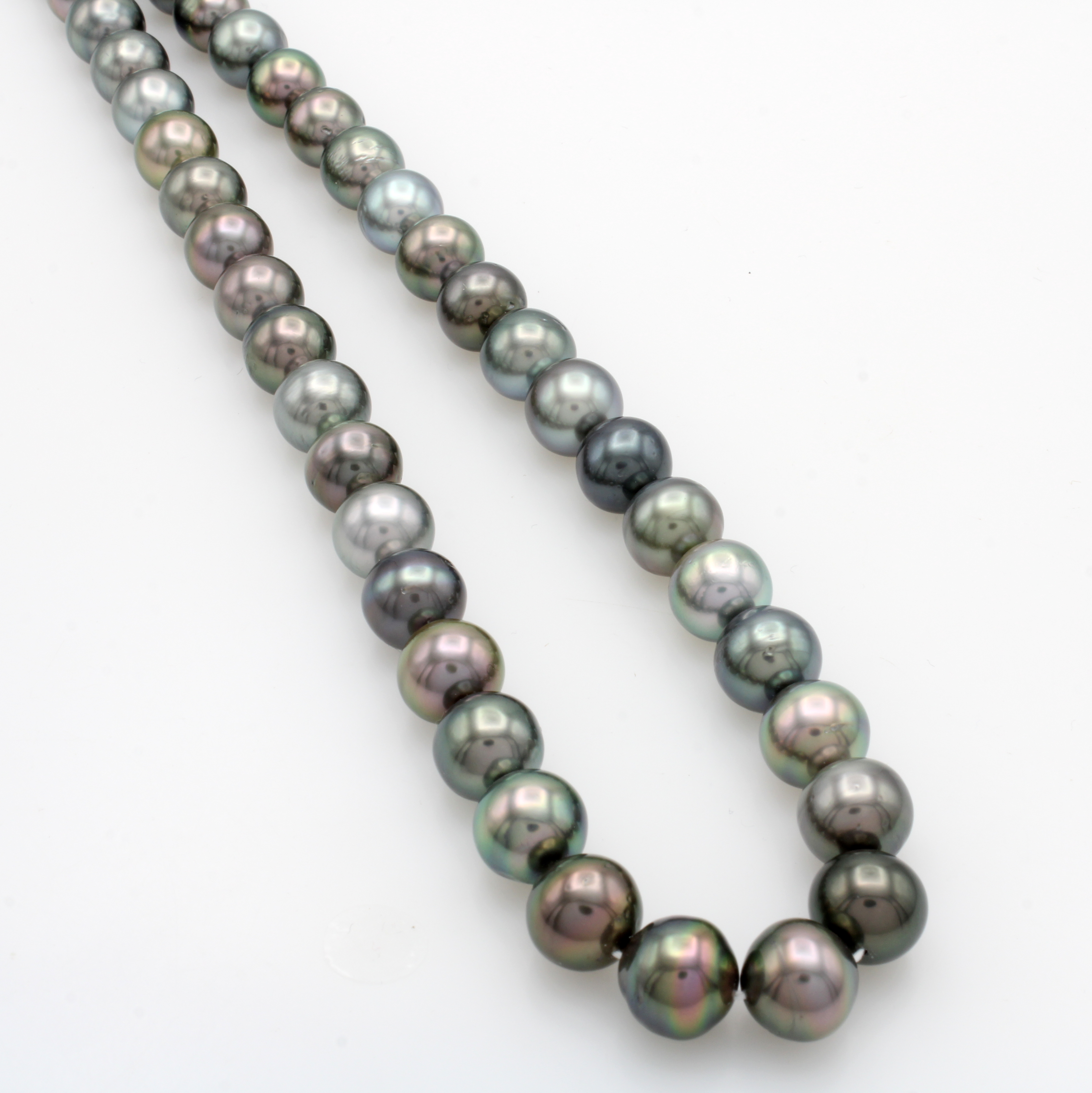 Tahitizuchtperlenstrang, graue Perlen, D. ca. 10-10.7 mm, L. ca. 41 cm Schätzpreis: 3800, - EUR