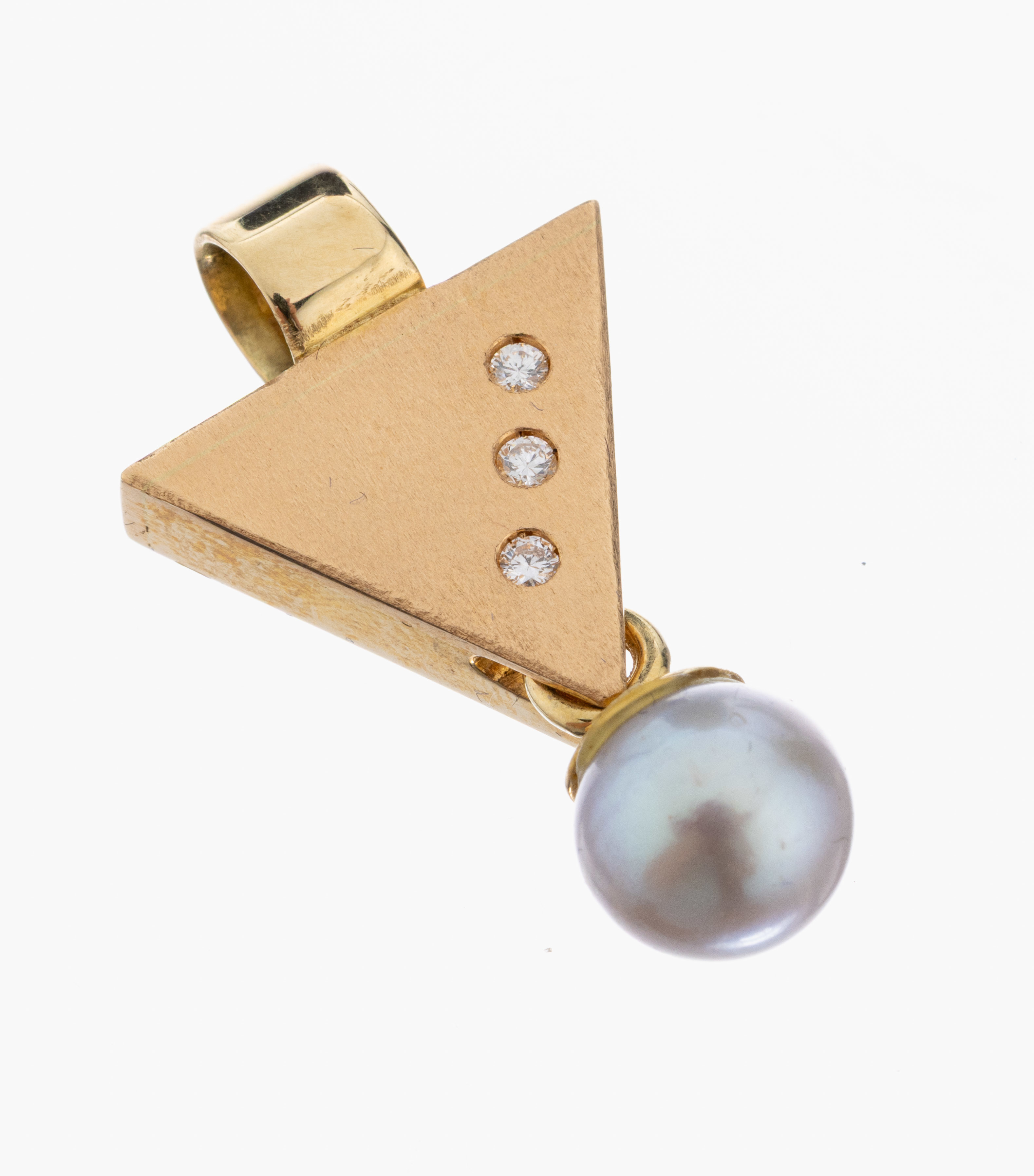 14 kt Gold Brillant-Perl-Anhänger, GG 585/000, mattiert, 3 kl. Brillanten, abgehängte