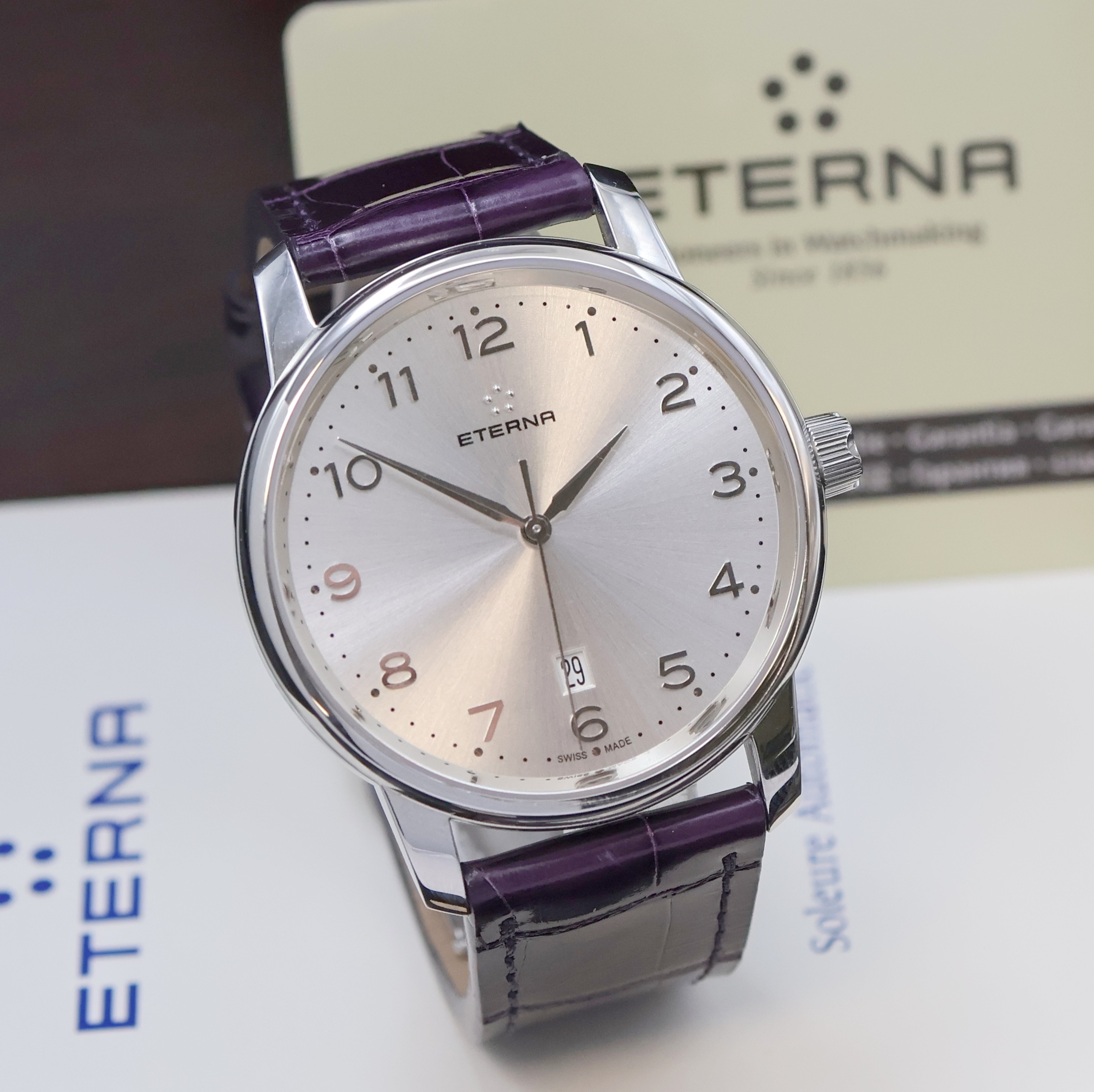 ETERNA nahezu neuwertige große Herrenarmbanduhr in Stahl mit Box und Papier, Schweiz