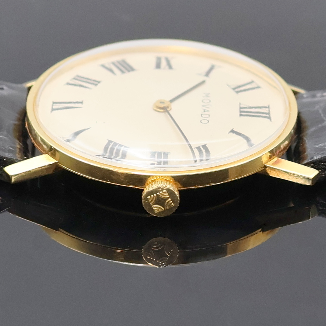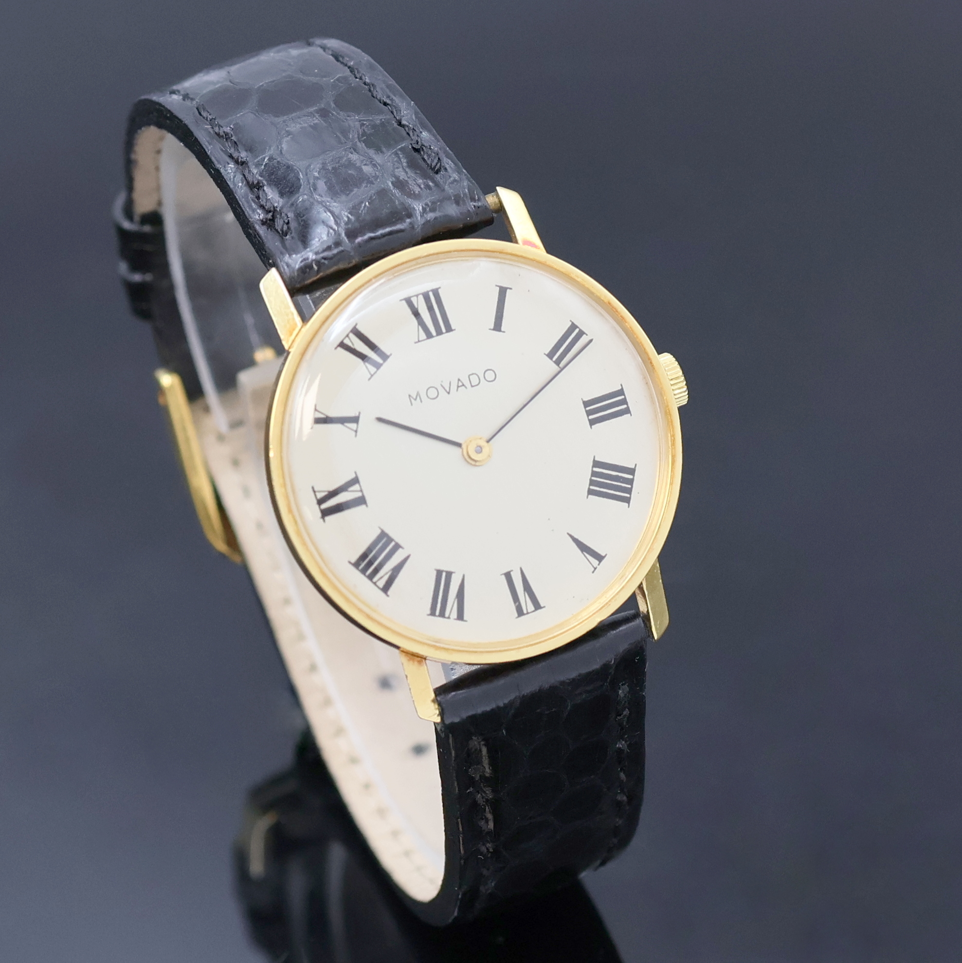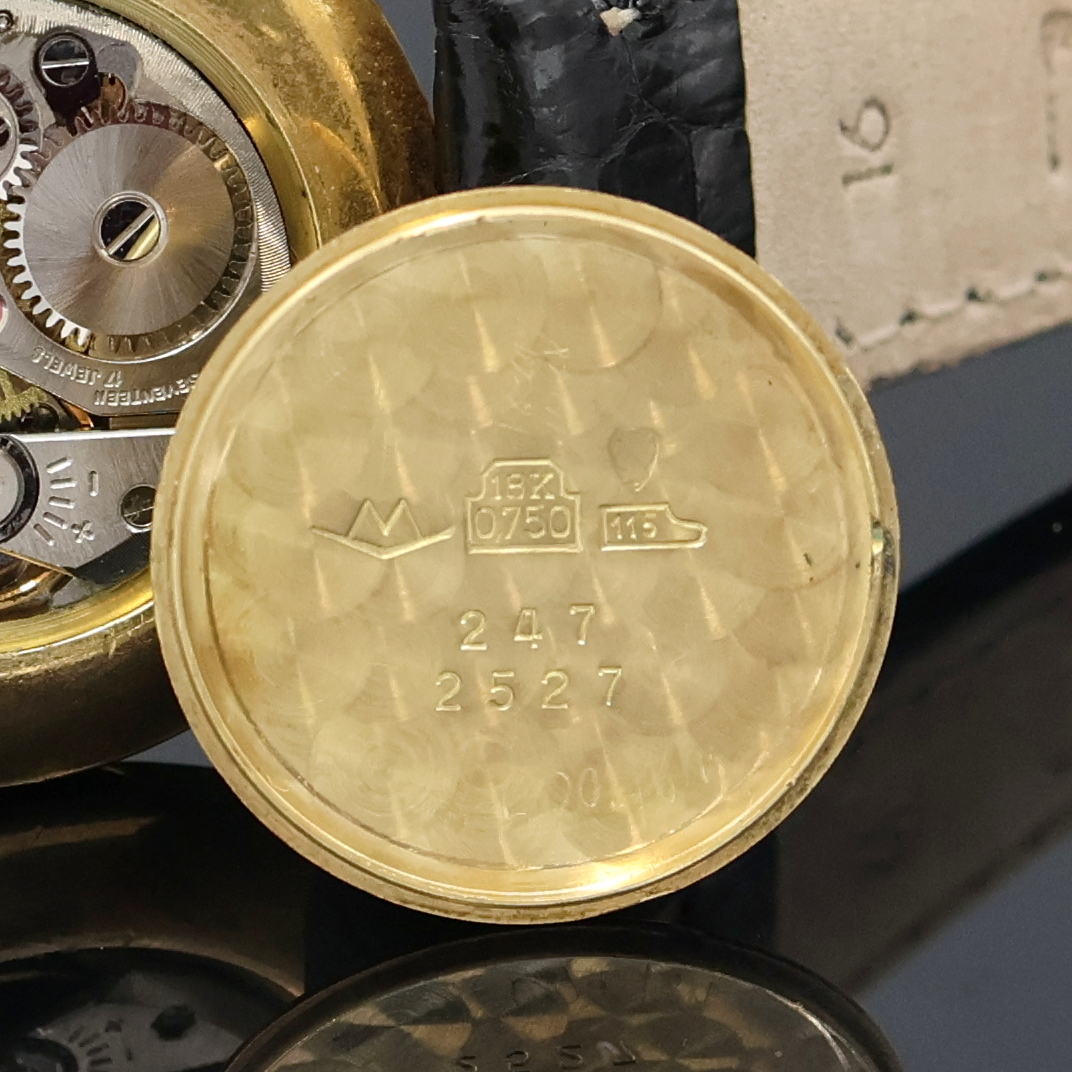 MOVADO Armbanduhr in GG 750/000, Handaufzug, Schweiz um 1968, Boden und Glasrand