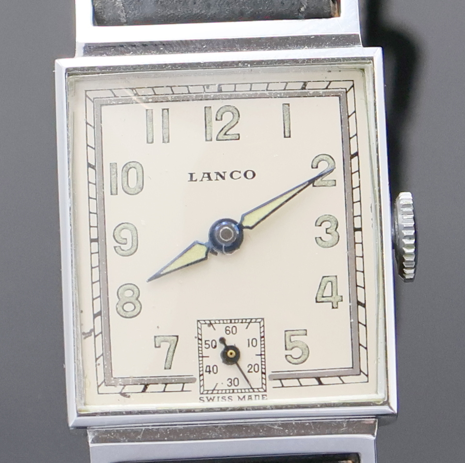 aufgedr., 1 x LANCO, silb. Zifferbl. m. arab. Std. fl., gebl. Zeiger, silb. Formankerw.