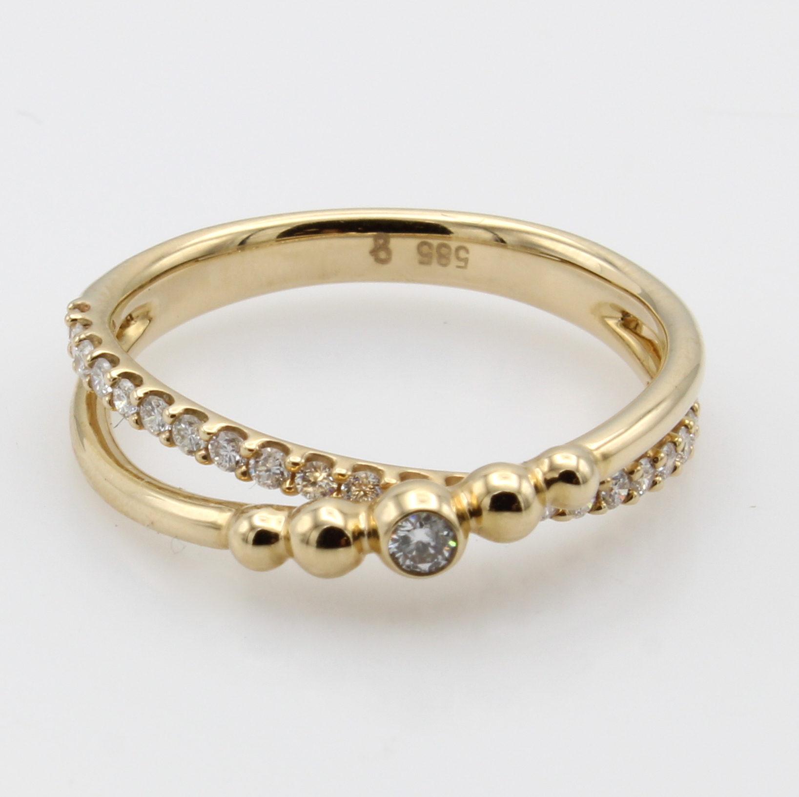 Ring mit Brillanten, GG 585/000, Brillant- solitär u. 23 Besatzbrill. zus. ca. 0.30 ct Weiß/p, RW ca. 56 Schätzpreis: 1600, - EUR