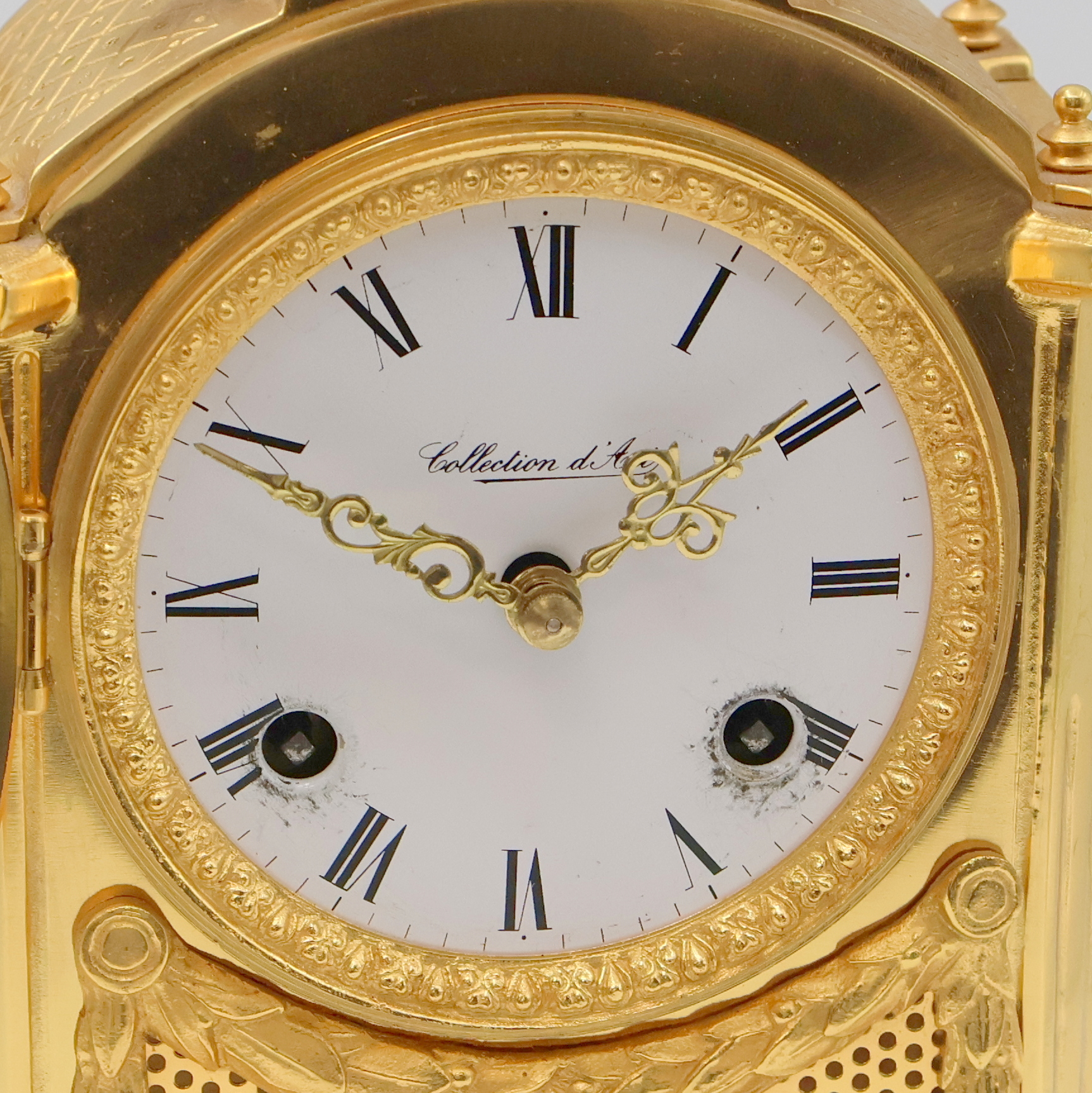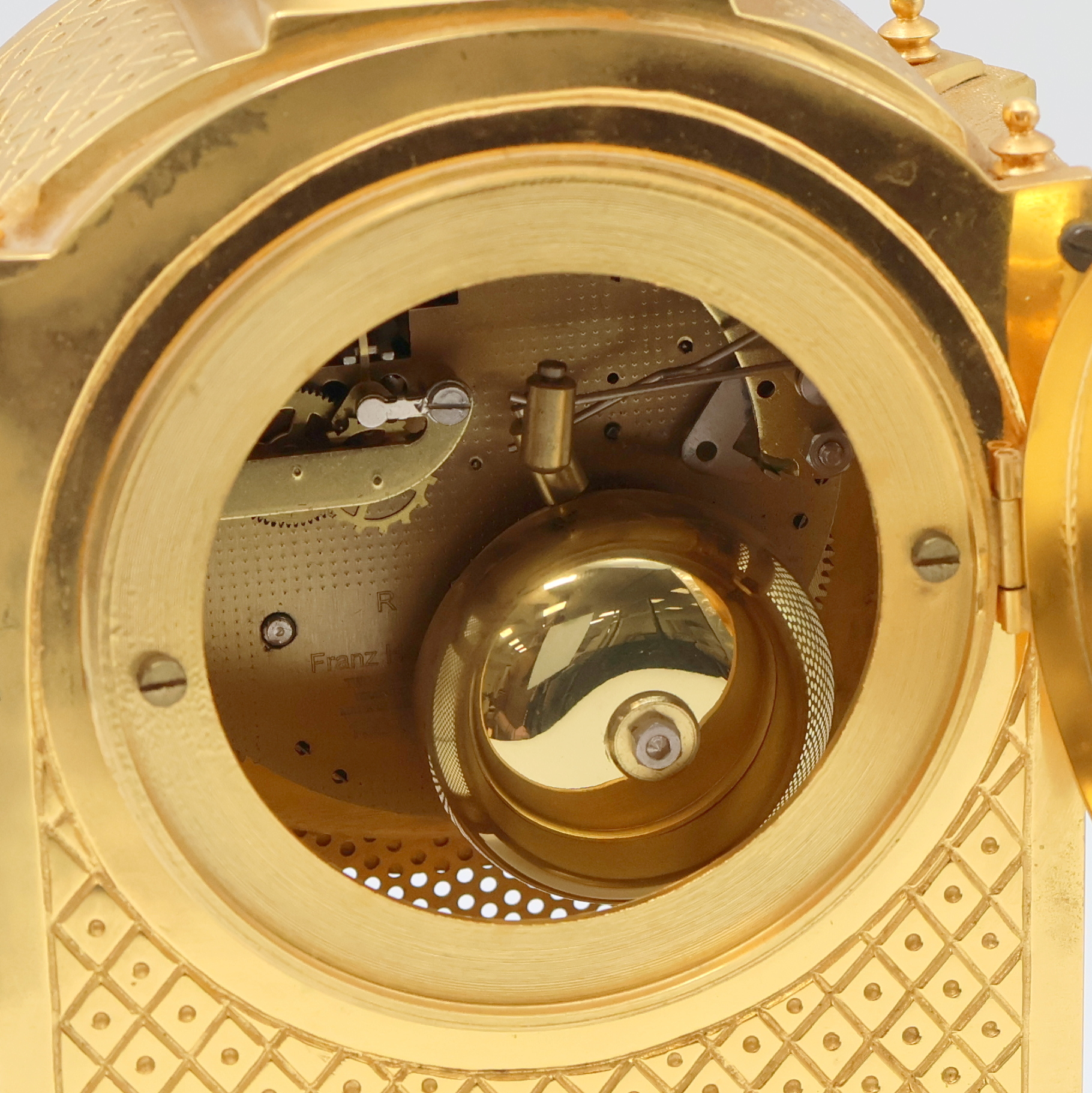 COLLECTION d'Art vergoldete Tischuhr mit Schlagwerk, Deutschland um 1980, verg. Geh.