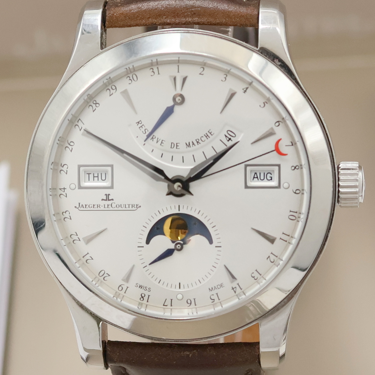 Jaeger-LeCoultre Master Calender Armbanduhr mit Vollkalender in Stahl Referenz 147.8.41