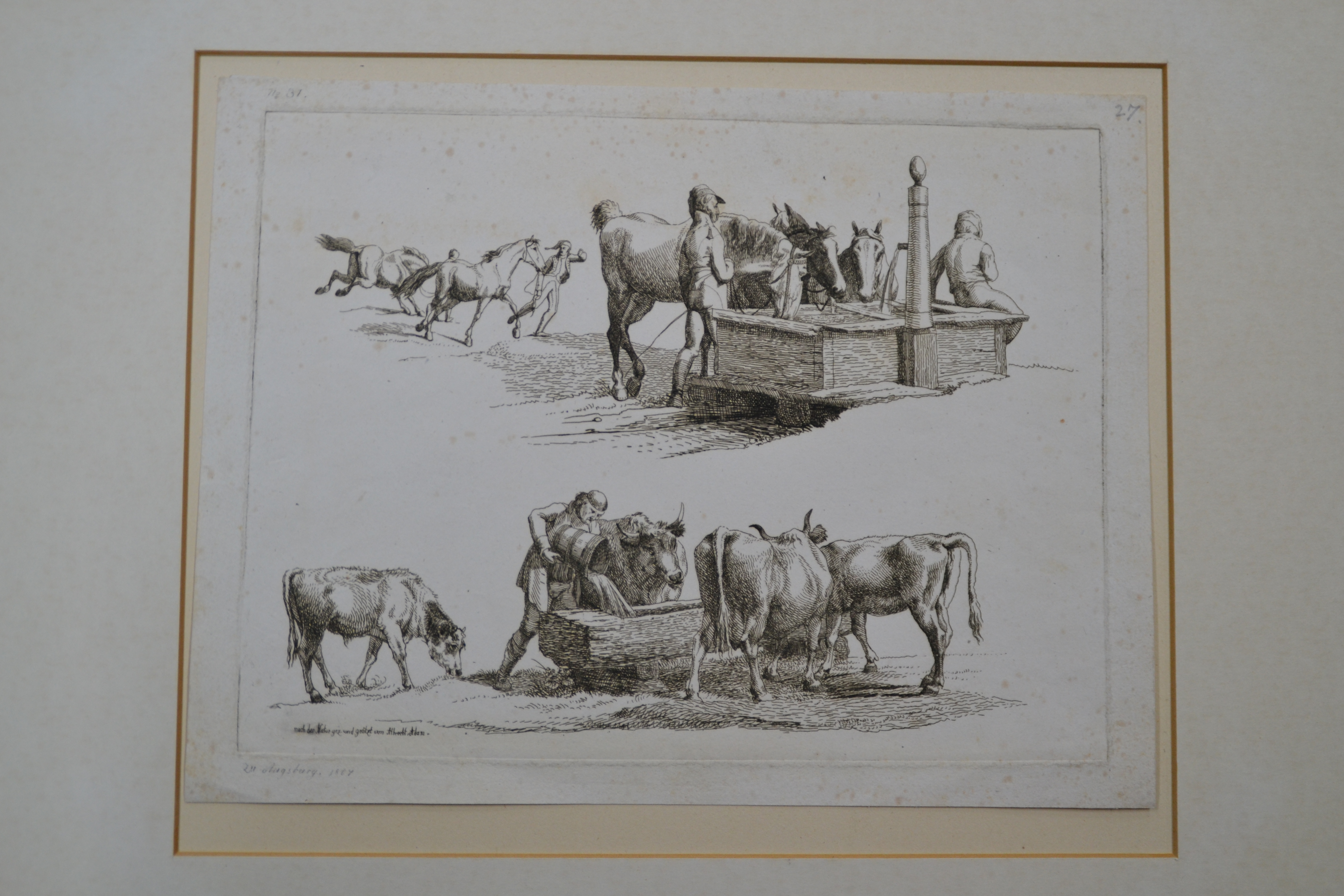 Albrecht Adam, 1786 Nördlingen-1862 München, Konvolut aus 5 Radierungen: 2 Tränkeszenen