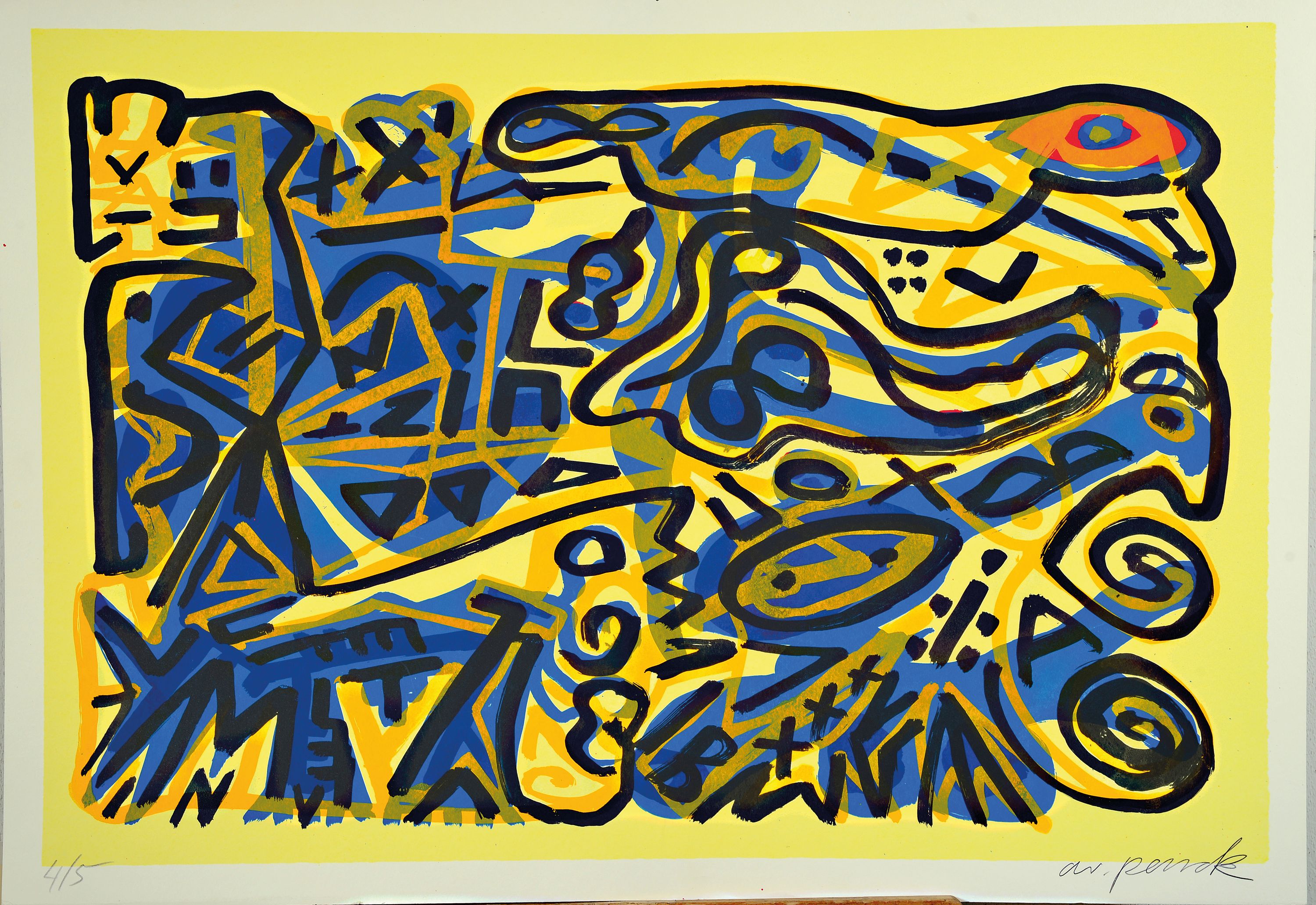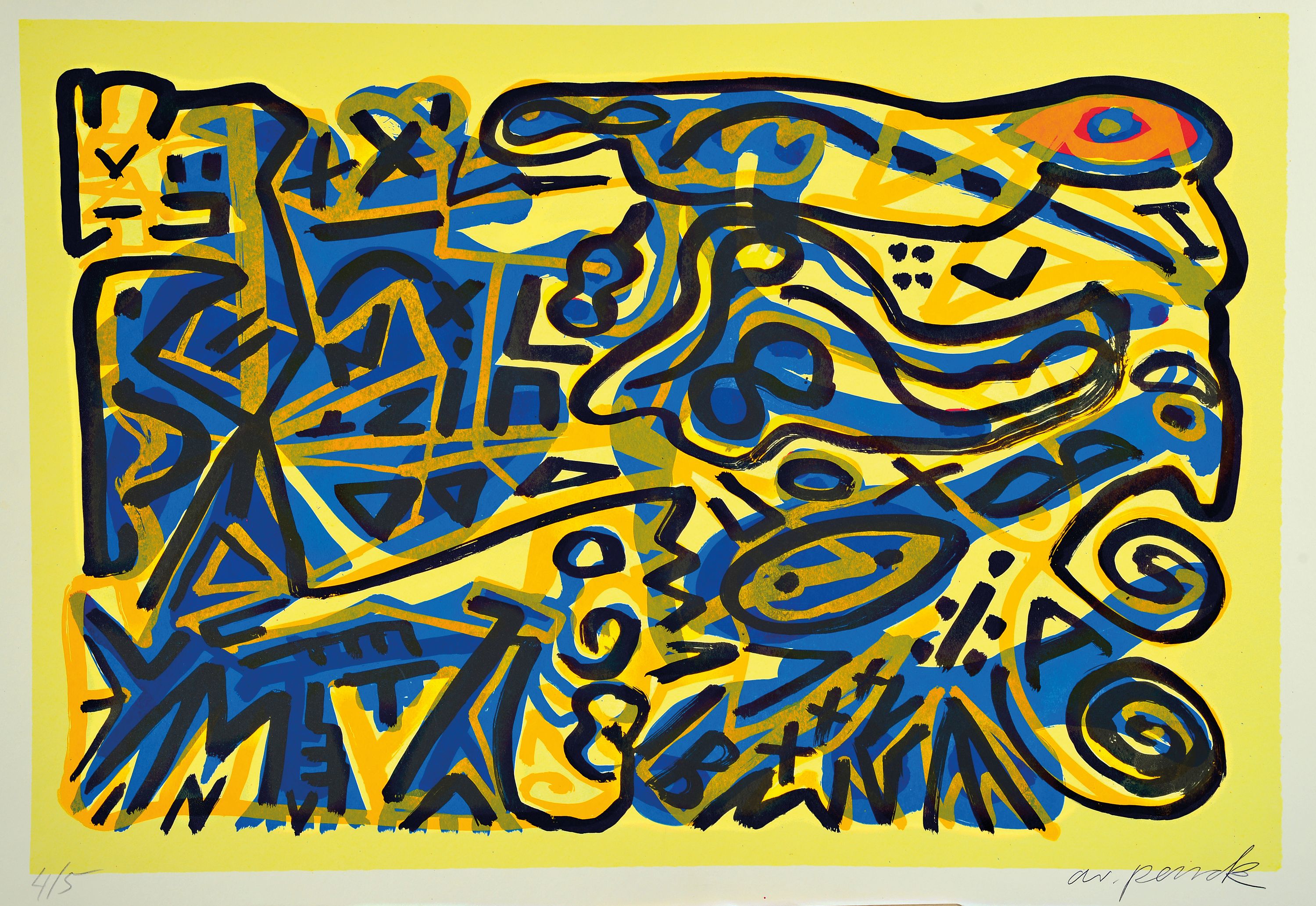 A.R. Penck, 1939-2017, Komposition in Gelb, Farbsiebdruck, handsign. und num. 4/5,