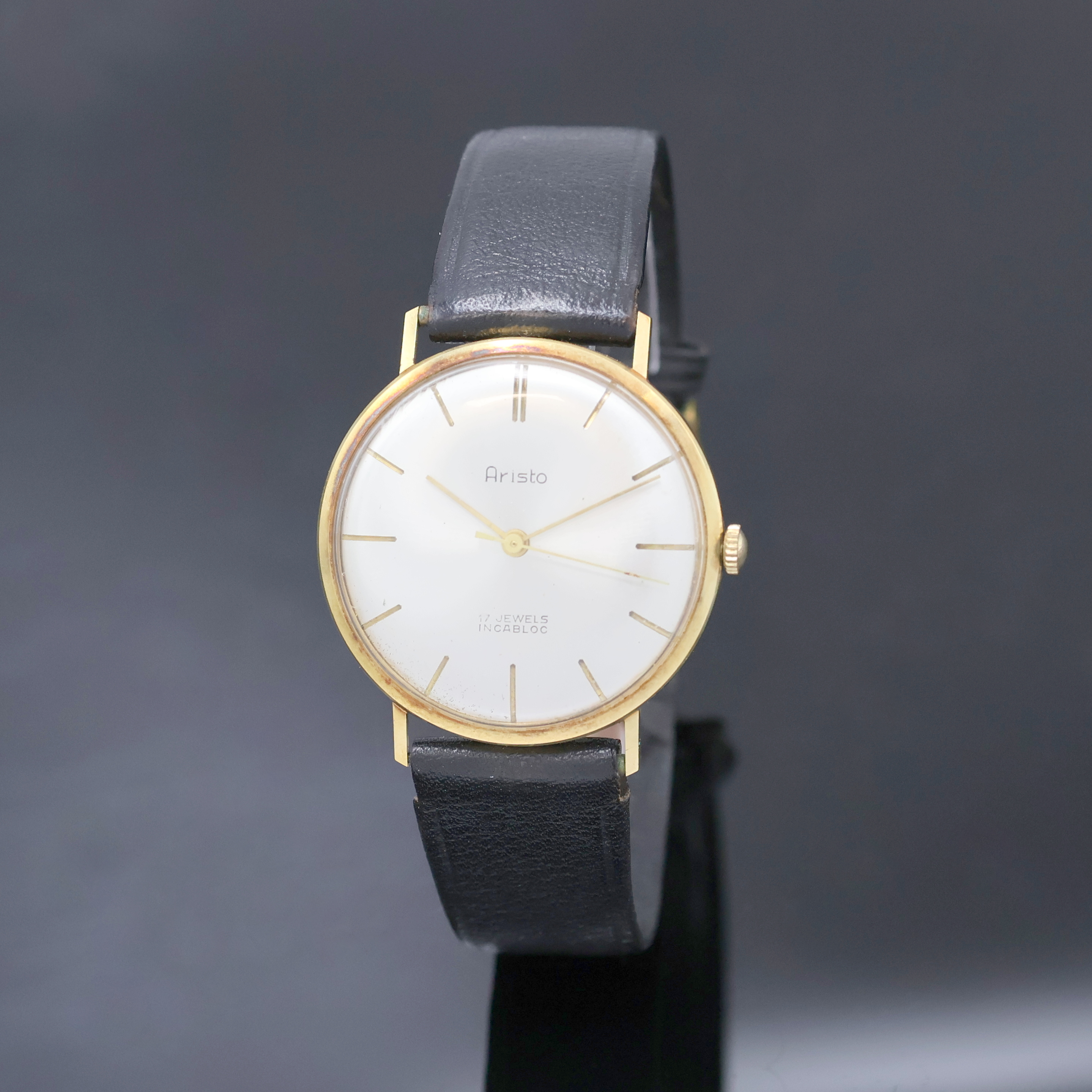 ARISTO Armbanduhr in GG 585/000, Deutschland um 1965, Handaufzug, Boden aufgedr.,