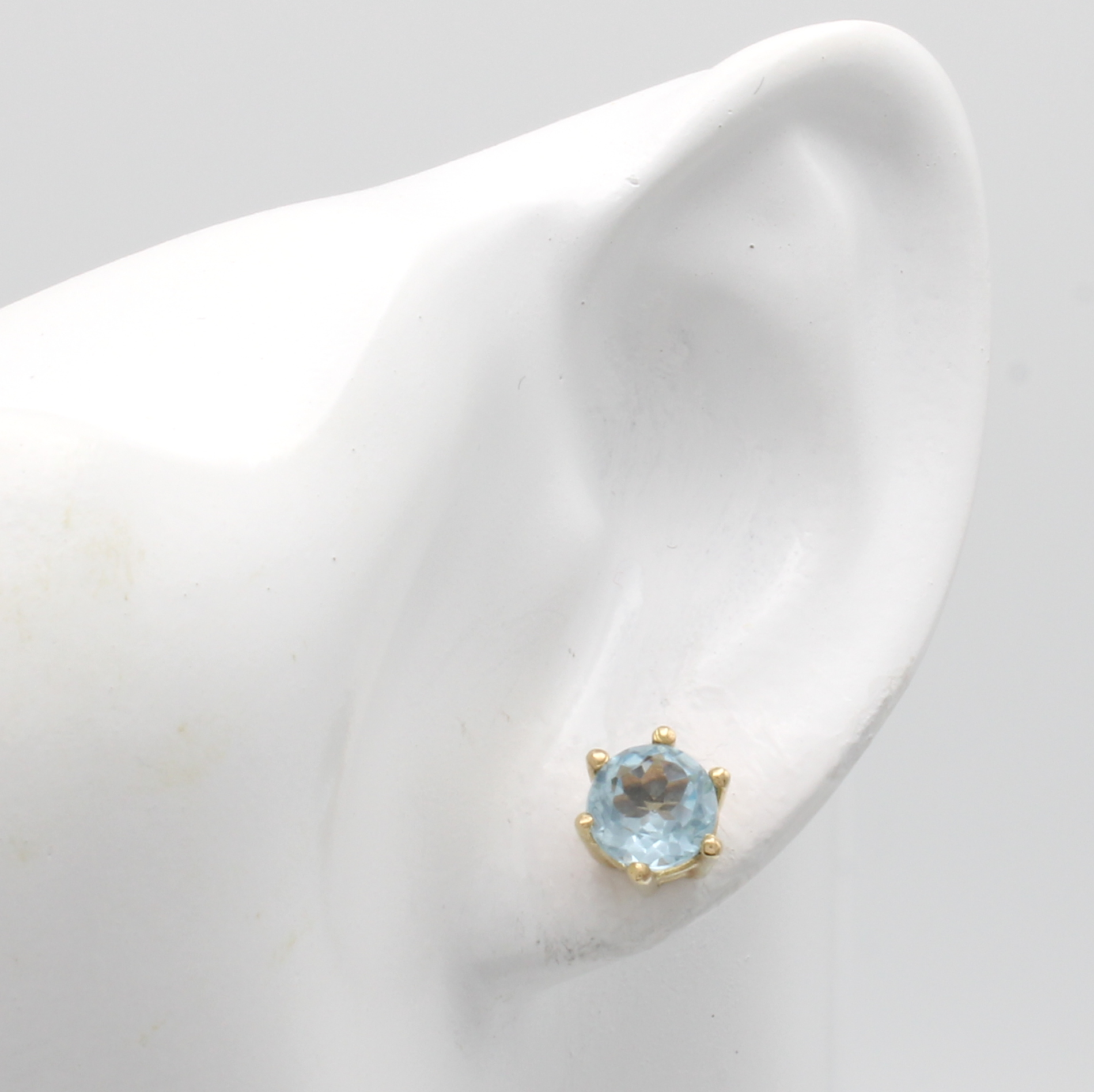 Paar Ohrstecker mit Blautopasen, GG 585/000, 2 Topase (beh.) in Krappenfassungen, D. ca. 7 mm Schätzpreis: 1020, - EUR