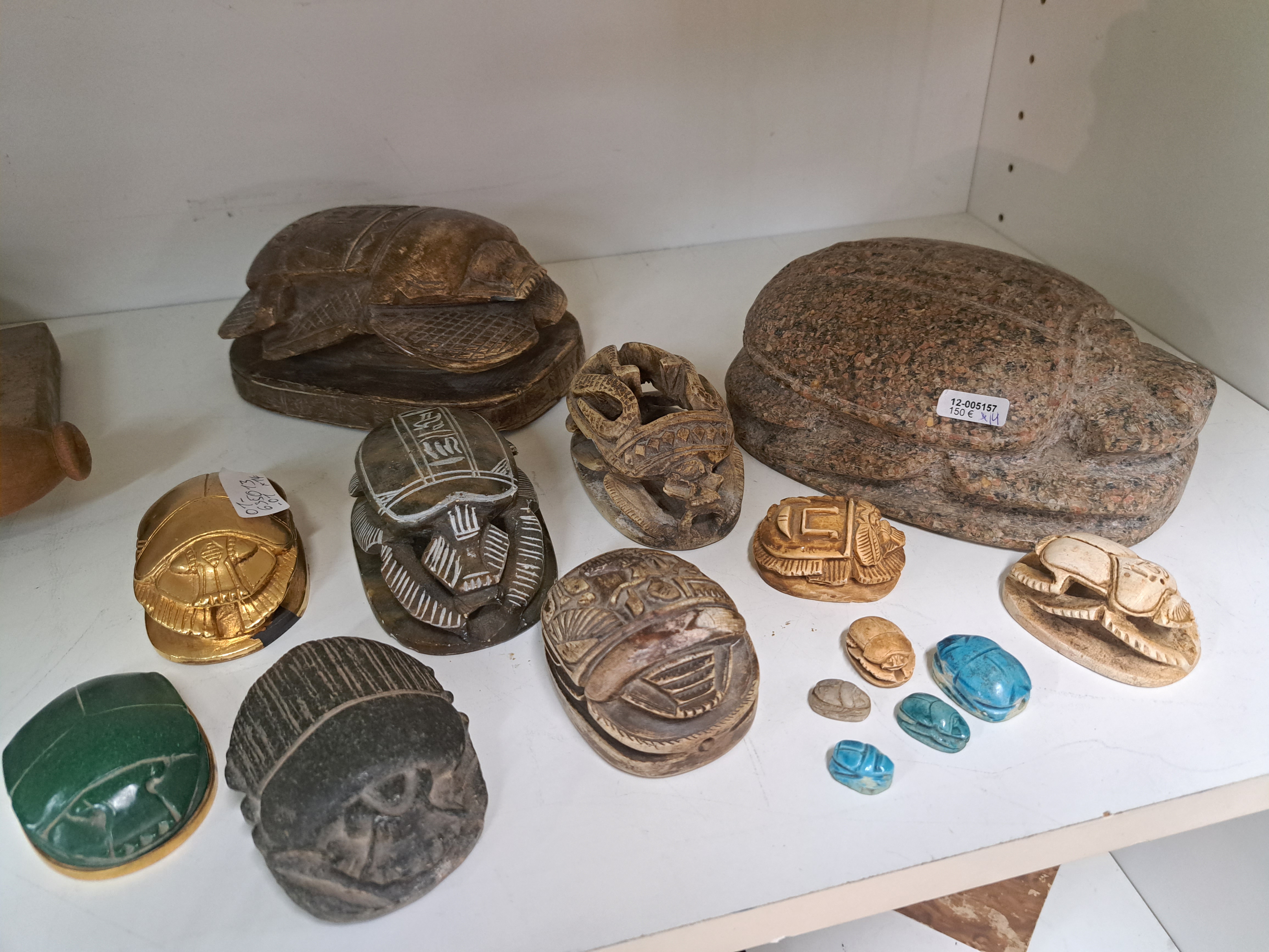 Konvolut aus 14 große Skarabäen, Ägypten, 20 .Jh., Stein und keramische Kunstgüsse,