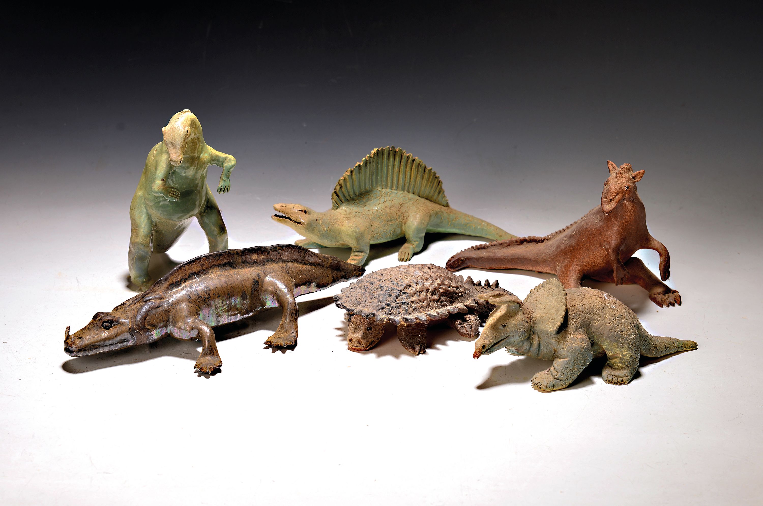 Konvolut aus 6 Keramikfiguren, Echsen und Dinosaurier, Atelier Margarete Zech, Nachkriegszeit,
