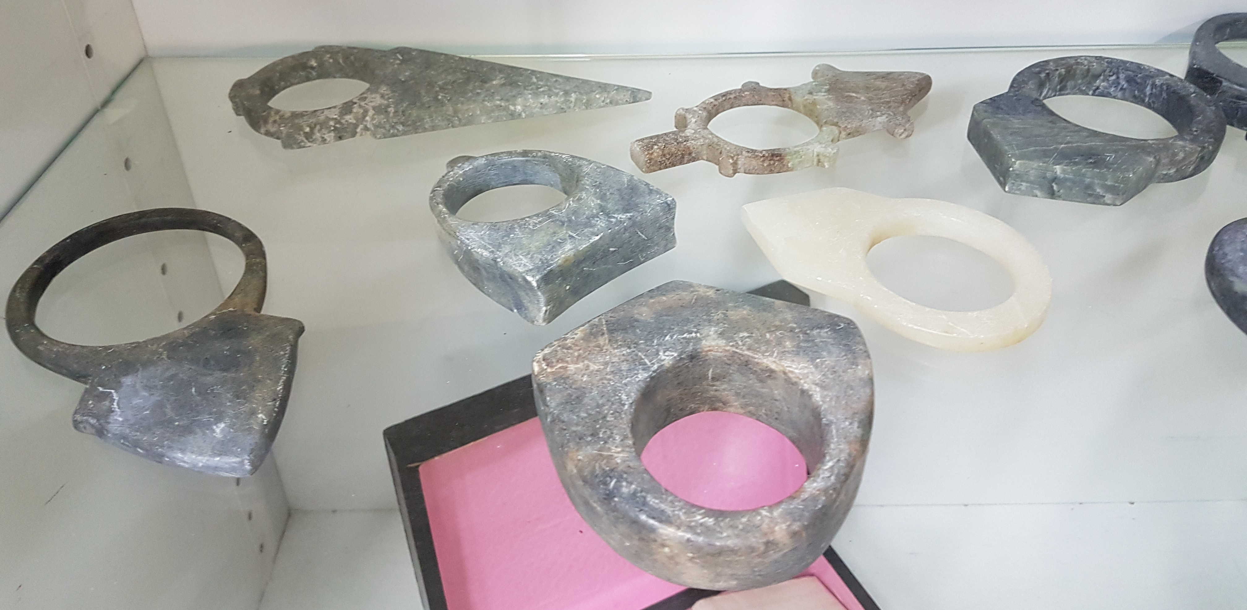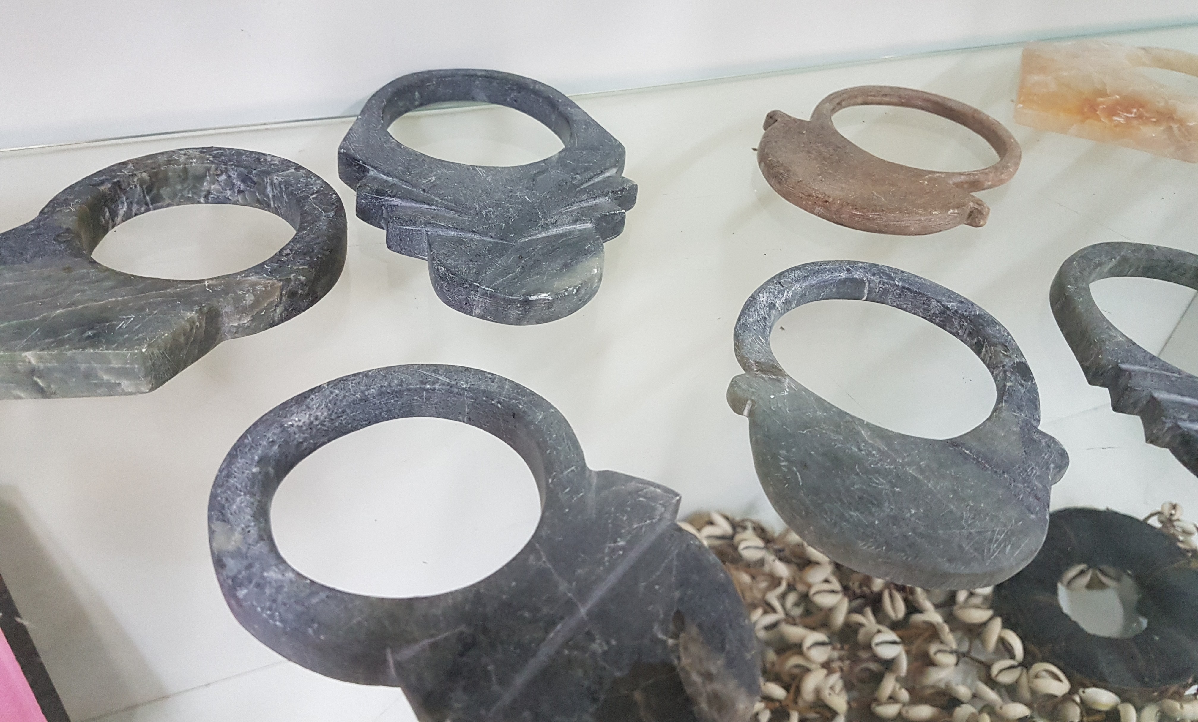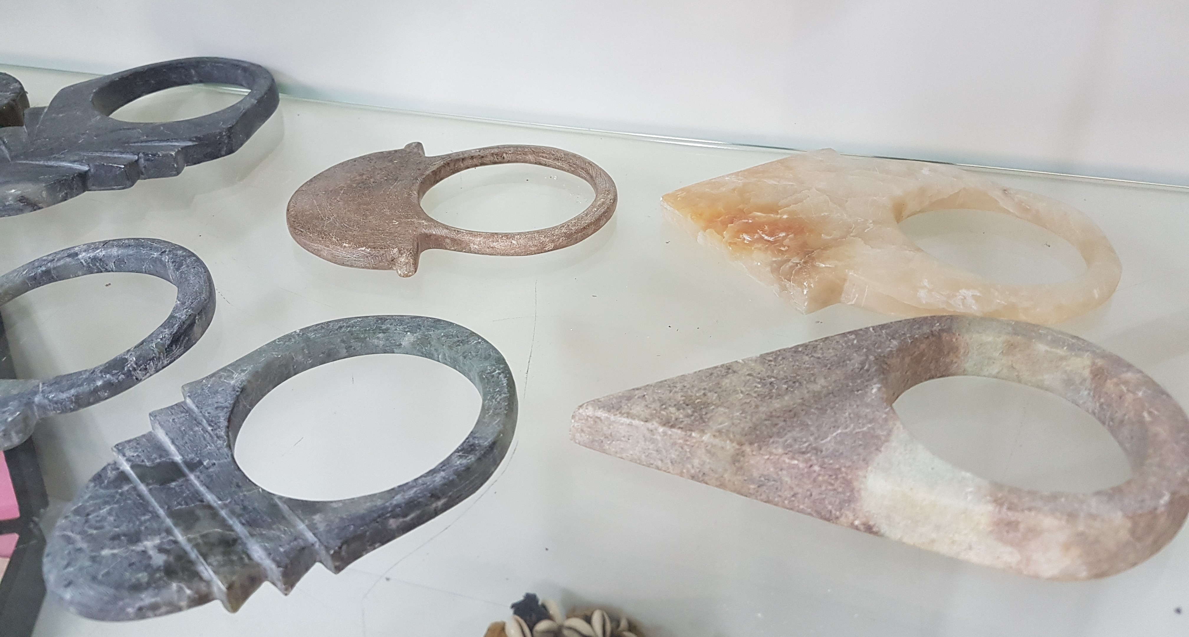 Konvolut 15 Tuareg-Amulette, sog. Tanfouk, Nordafrika, 20.Jh., aus verschiedenen Steinen, Alterssp., 9x6-24x10 cm., 1 x geb.