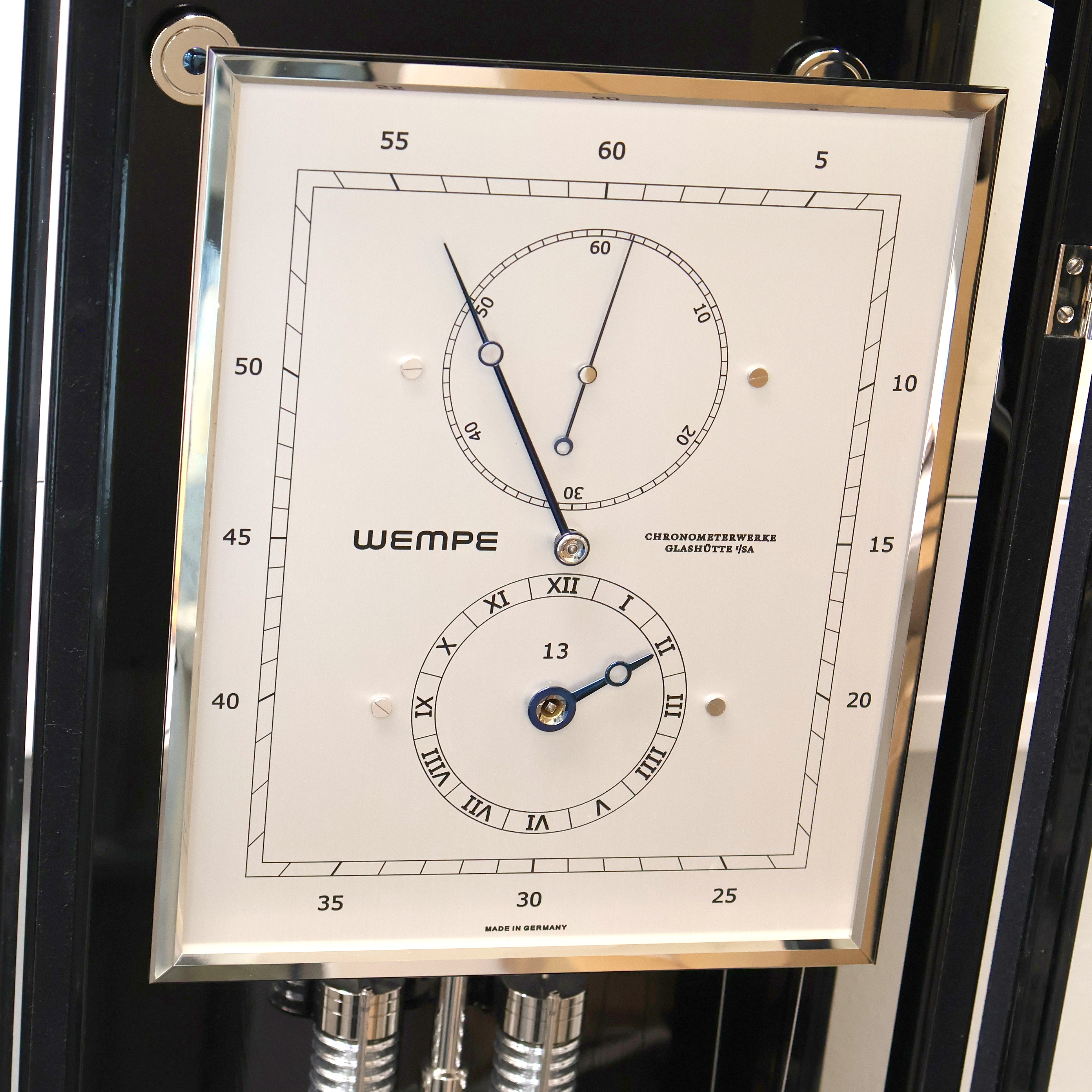 Wempe Glashütte i/SA Chronometerwerke imposante Monatsläufer Sekundenpendeluhr