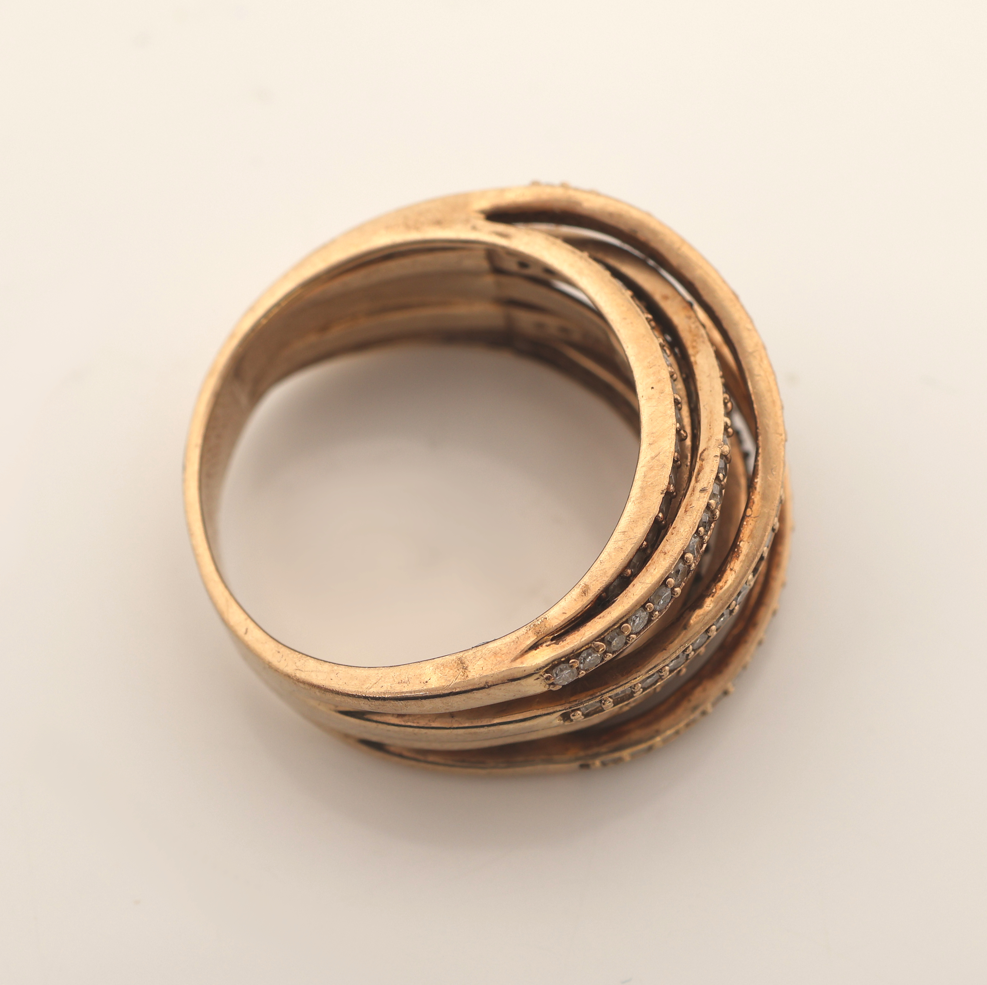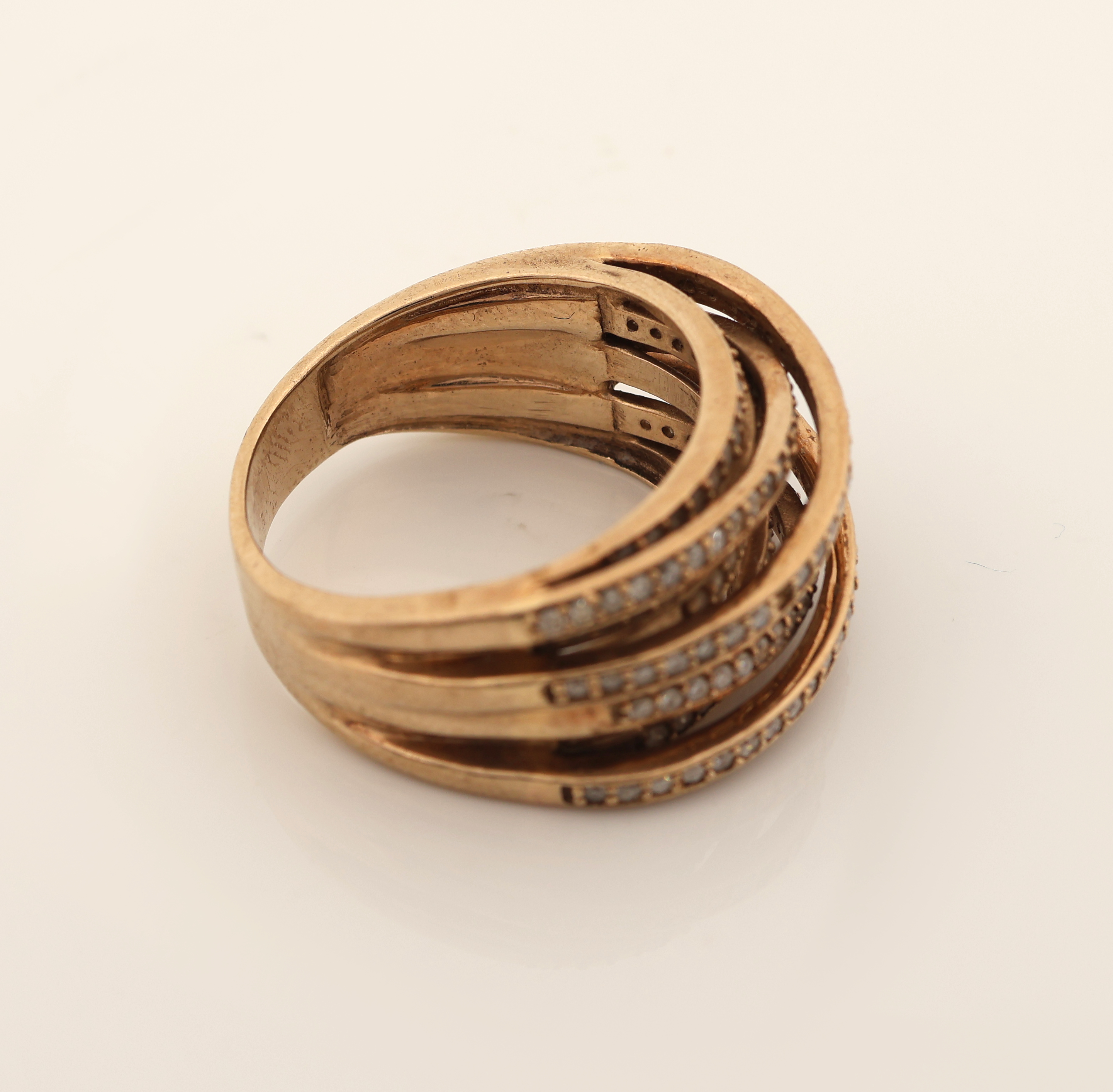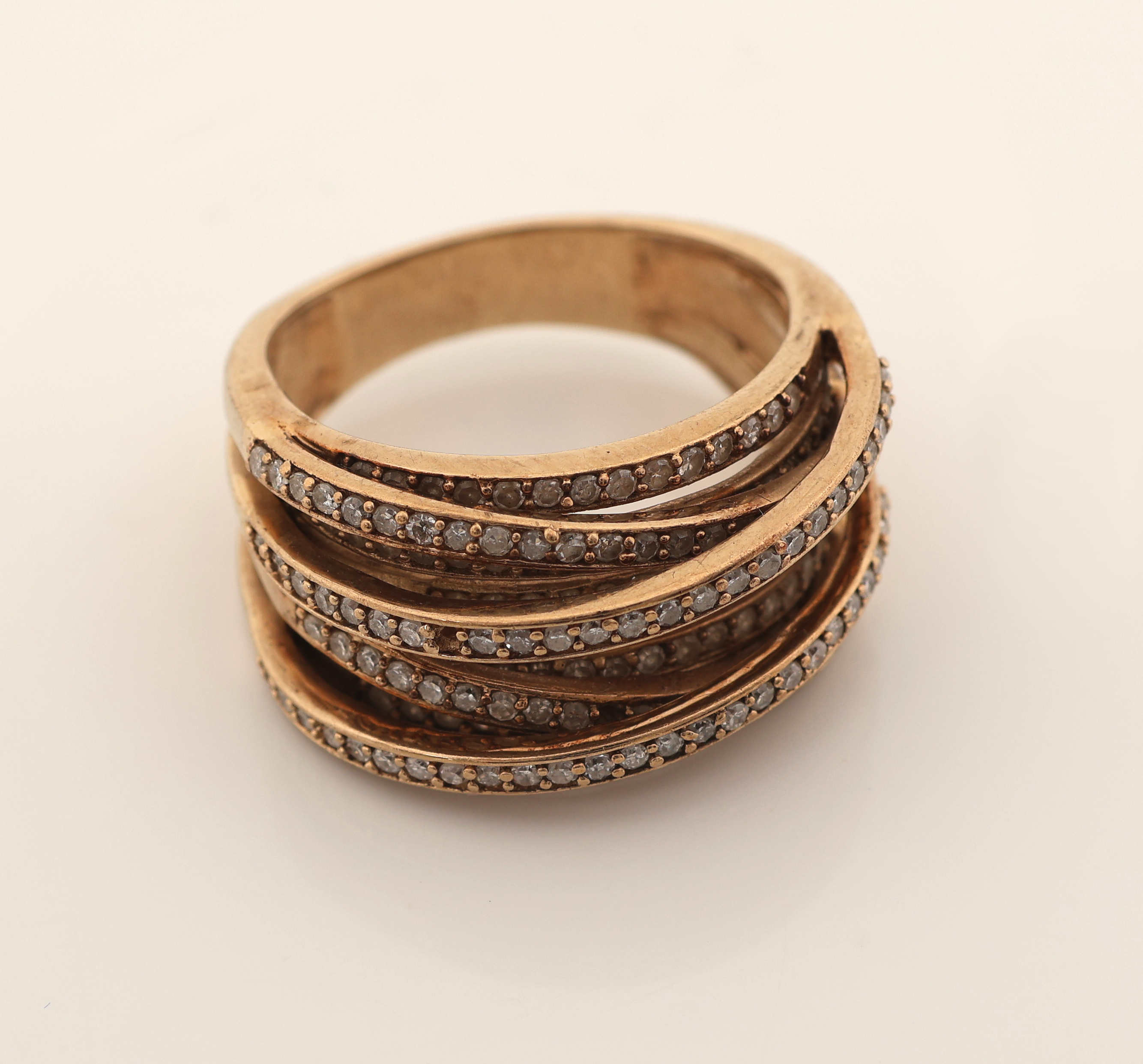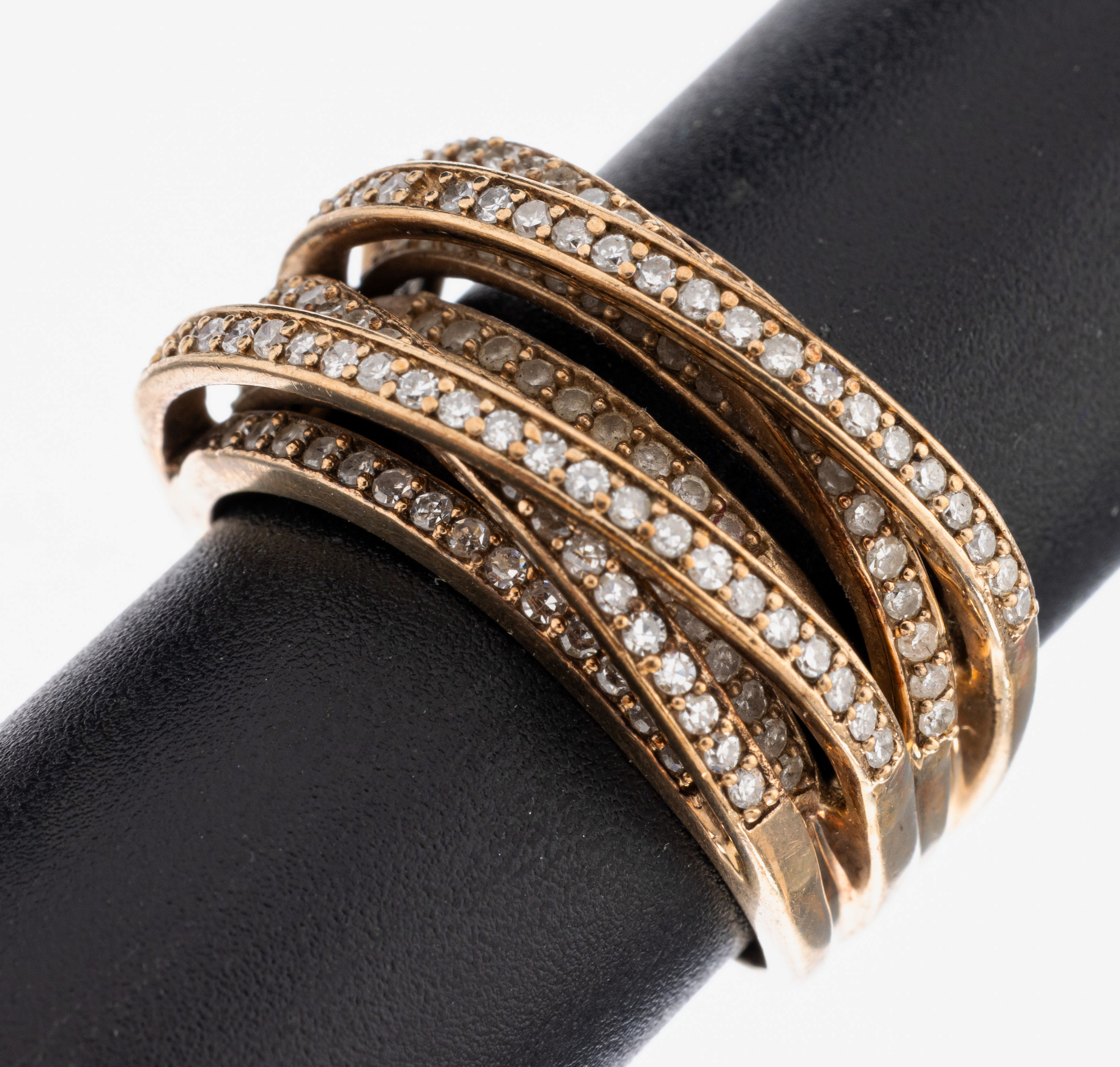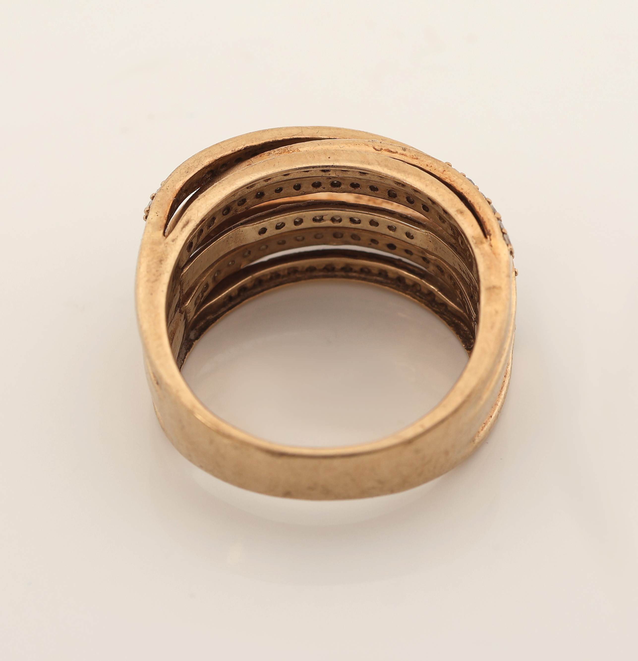9 kt Gold Diamant-Ring, GG 375/000, außergewöhnliche Gestaltung, Aufbau in mehreren