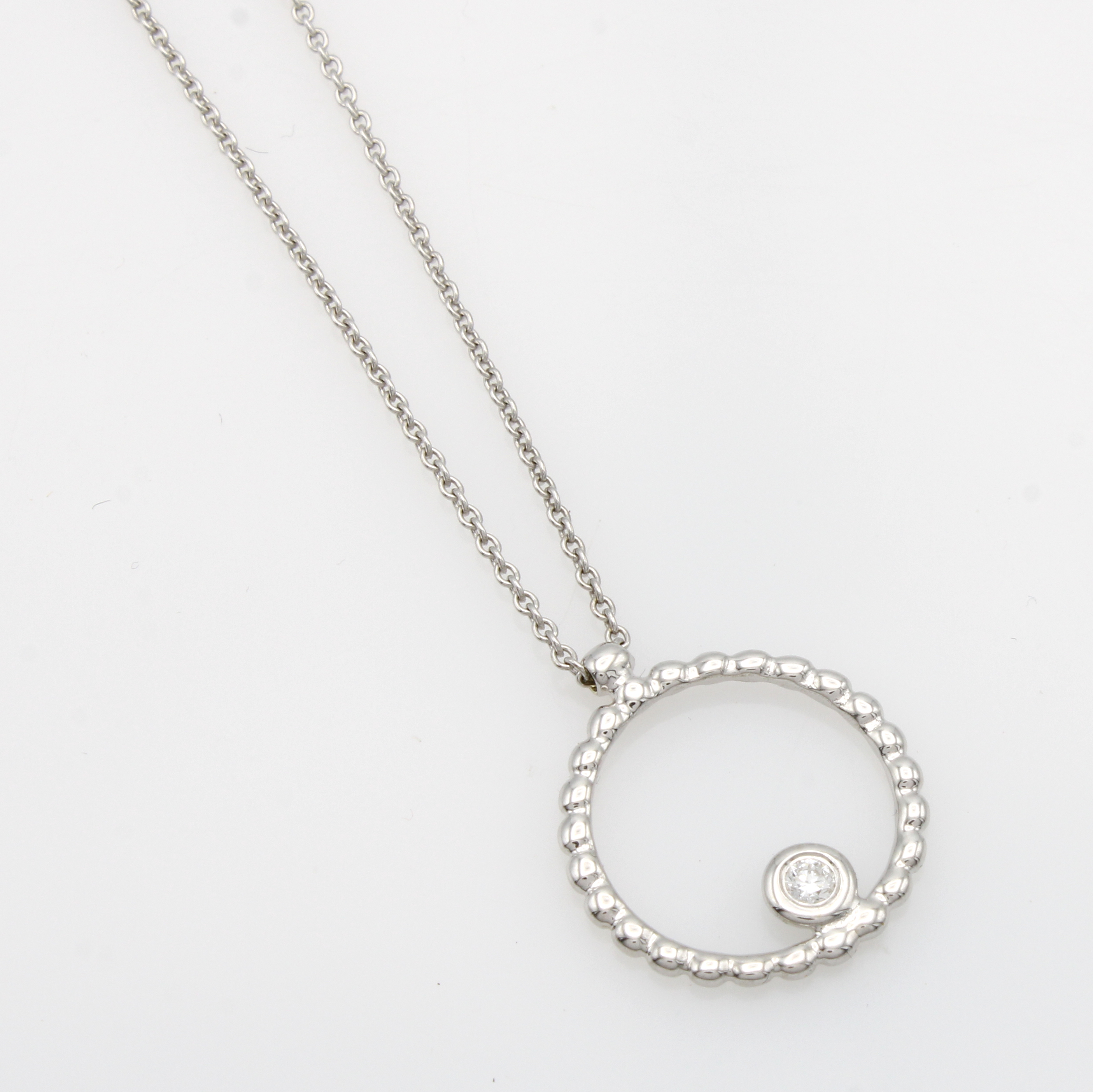 Anhänger mit Brillant an Kette, WG 585/000, im Kugeldesign, Brill. ca. 0.05 ct Weiß/si, L. ca. 42 cm Schätzpreis: 1250, - EUR