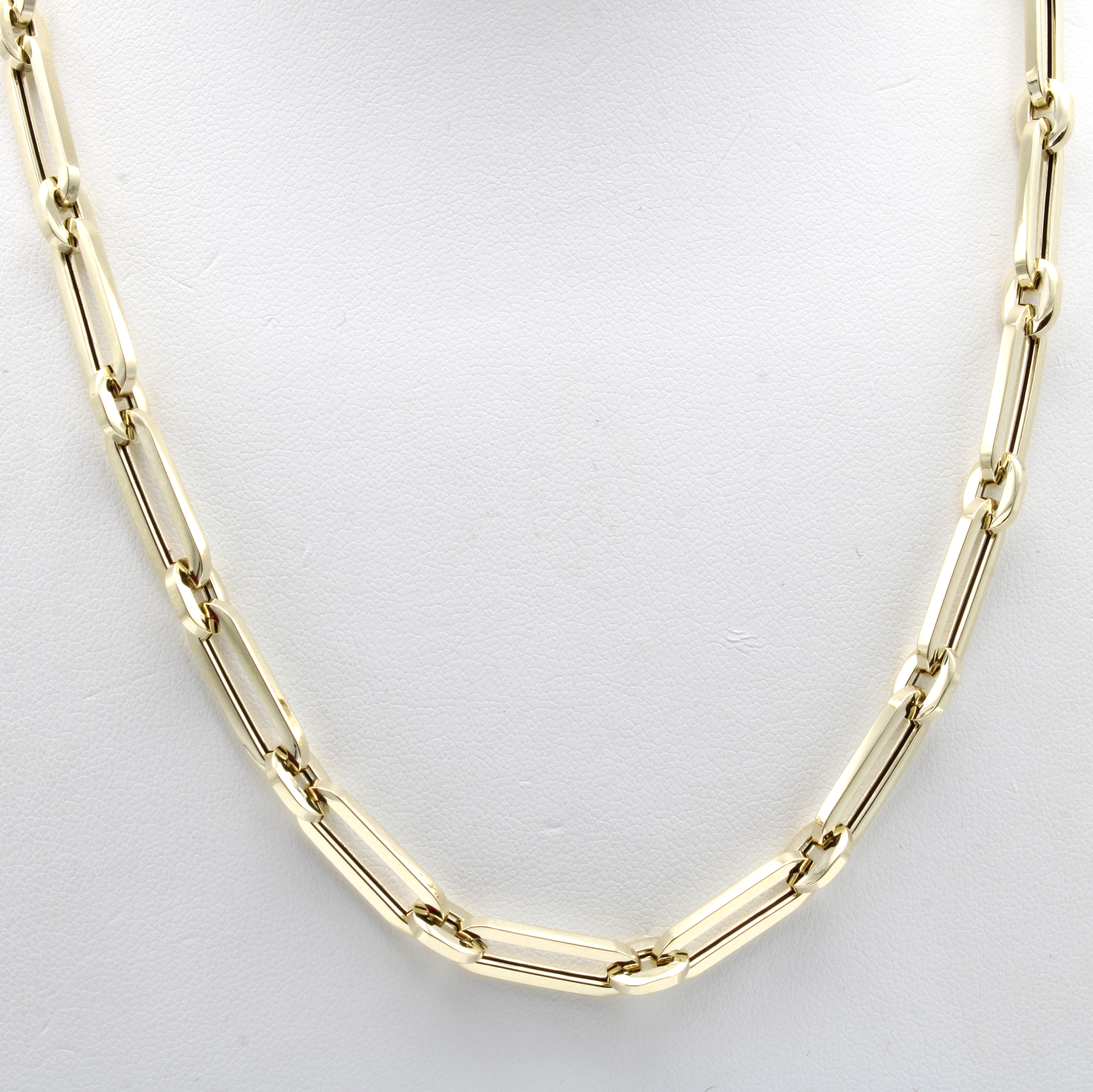 Collier, GG 585/000, längliche Glieder, Karabinerschl., L. ca. 45 cm Schätzpreis: 4500, - EUR
