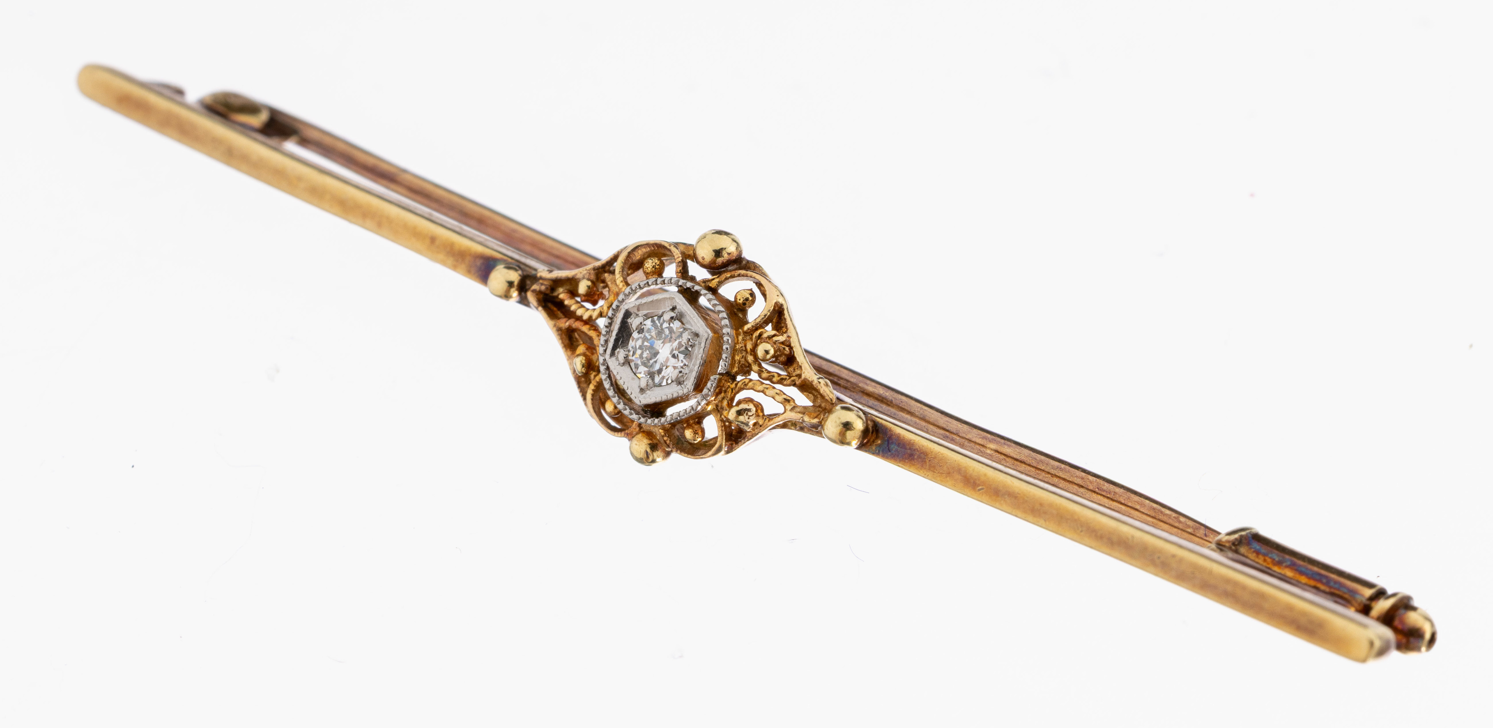 14 kt Gold Diamant-Brosche, 1930er Jahre, GG/WG 585/000, länglich, Mittelteil durchbrochen