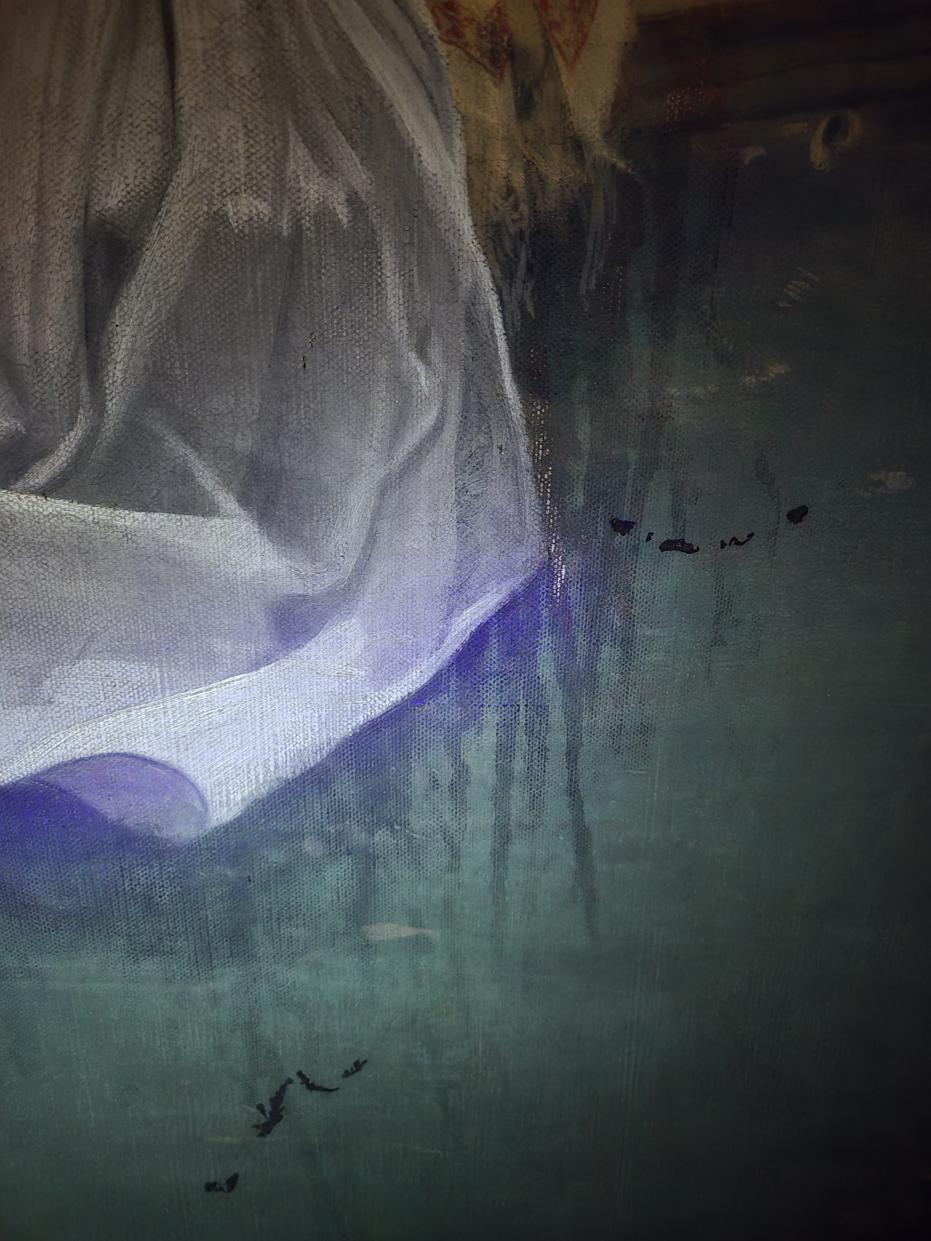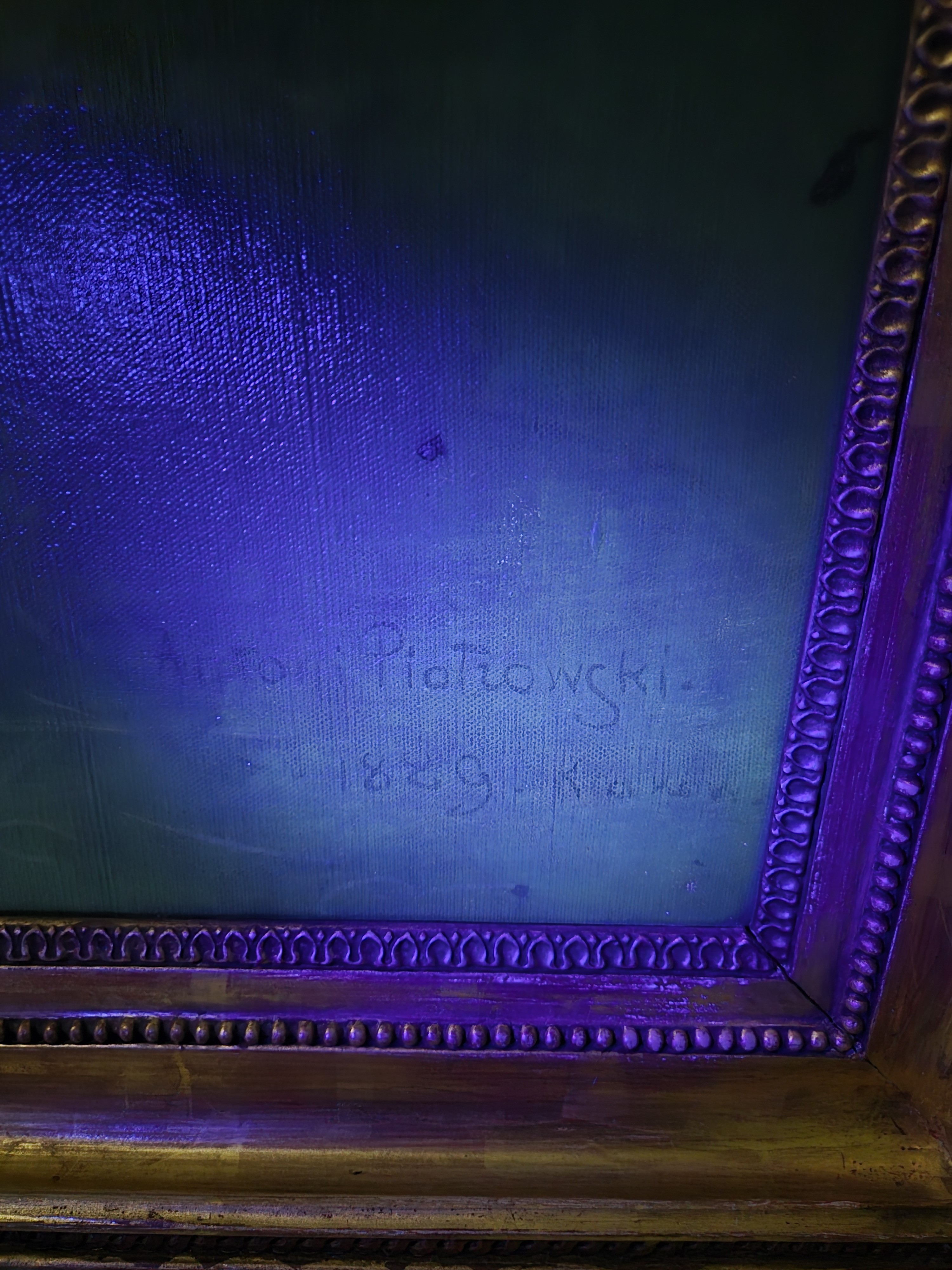 | Beschreibung | Antoni Piotrowski, 1853 Kunow/Polen-1924 Warschau, Balkan-Trachtengruppe, 4 Frauen verschiedenen Alters in volksfrömmiger Übung, hintergründig ein älterer Mann vor einem Bauernhaus sitzend, rechts unten signiert und datiert Krakow 1889, Öl/Lwd, l. restauriert, 132x180 cm, Hohlkehrlrahmen mit Kyma 138x186 cm; Piotrowski studierte an der Akademie Krakau |