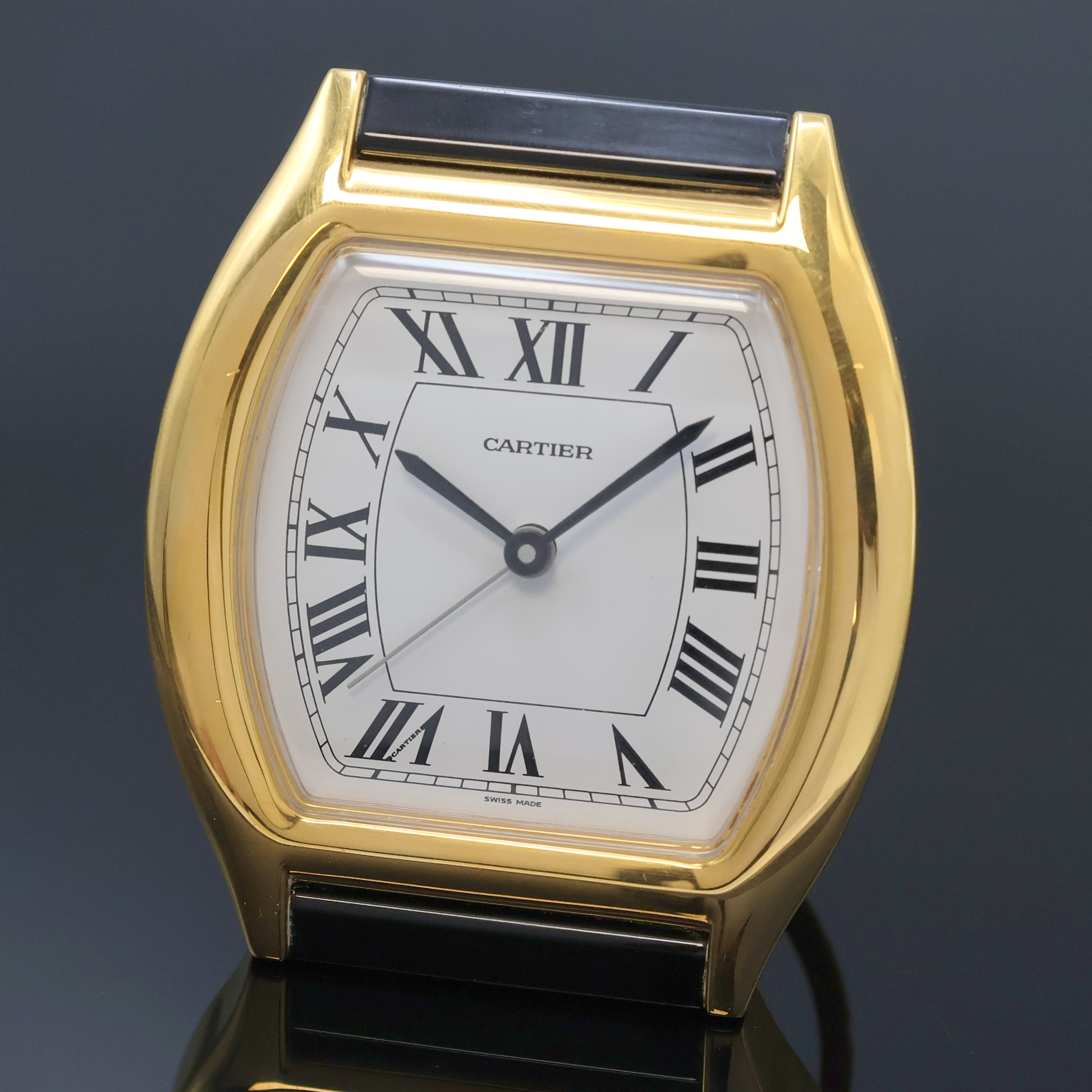 CARTIER Tischwecker Referenz 6601, quarz, Schweiz um 1995, verg. und z. T. lackiertes