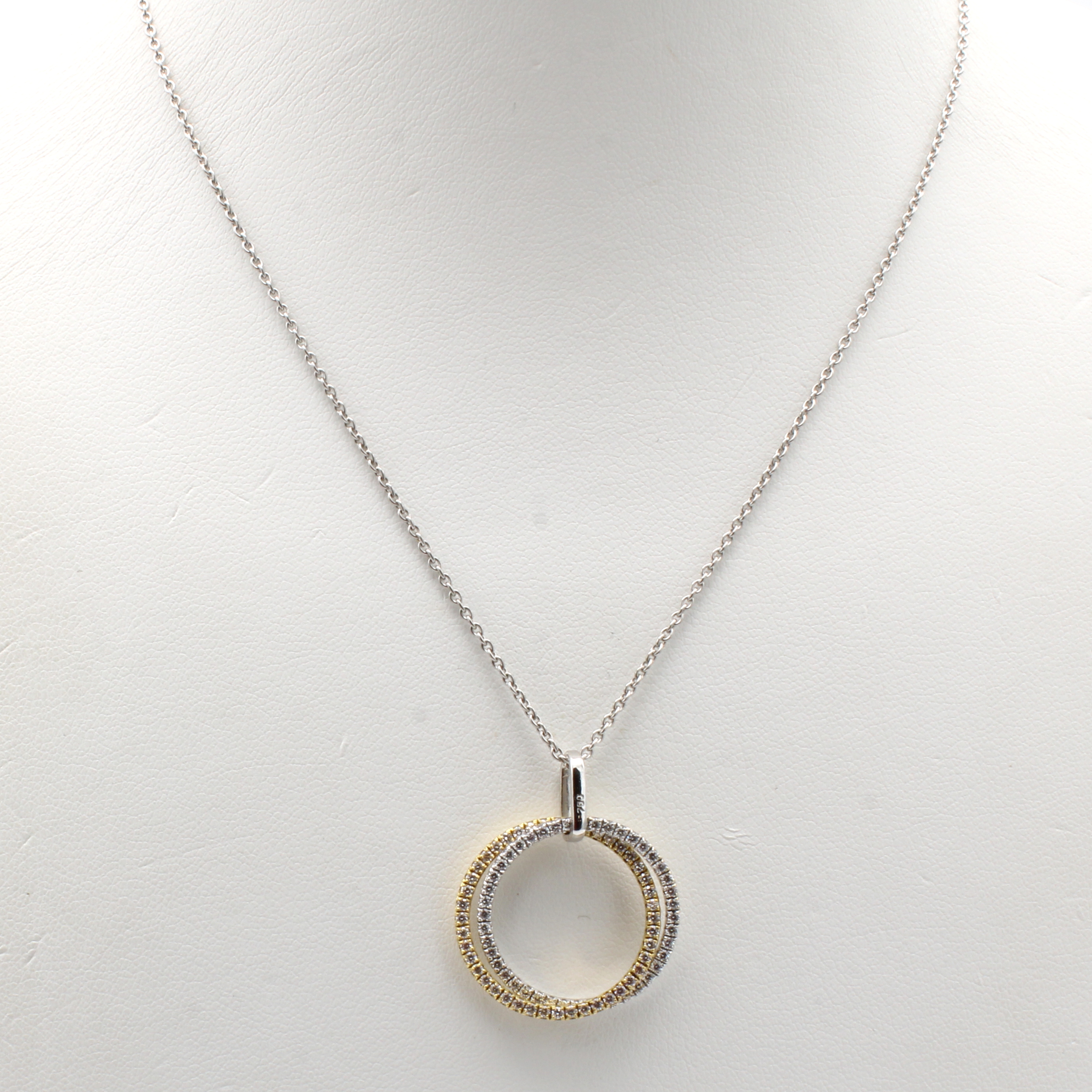 Anhänger mit Brillanten an Kette, GG/WG 585/000, 2 ineinander verschl. Kreise bes. m. Brill. zus. ca. 0.64 ct Weiß/si Schätzpreis: 2850, - EUR