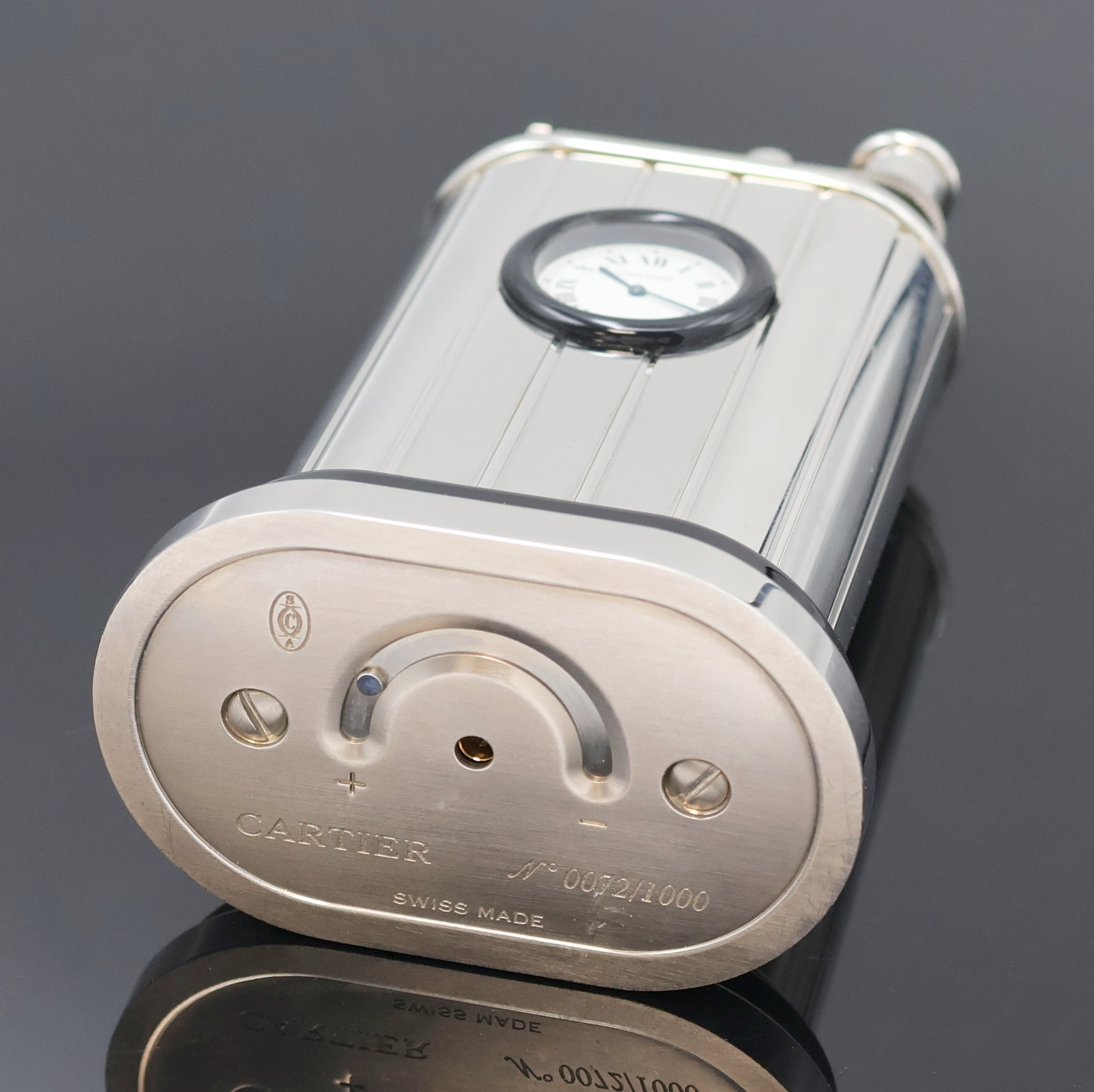 CARTIER auf 1000 Stück limitiertes Tischfeuerzeug mit integrierter Uhr, Schweiz