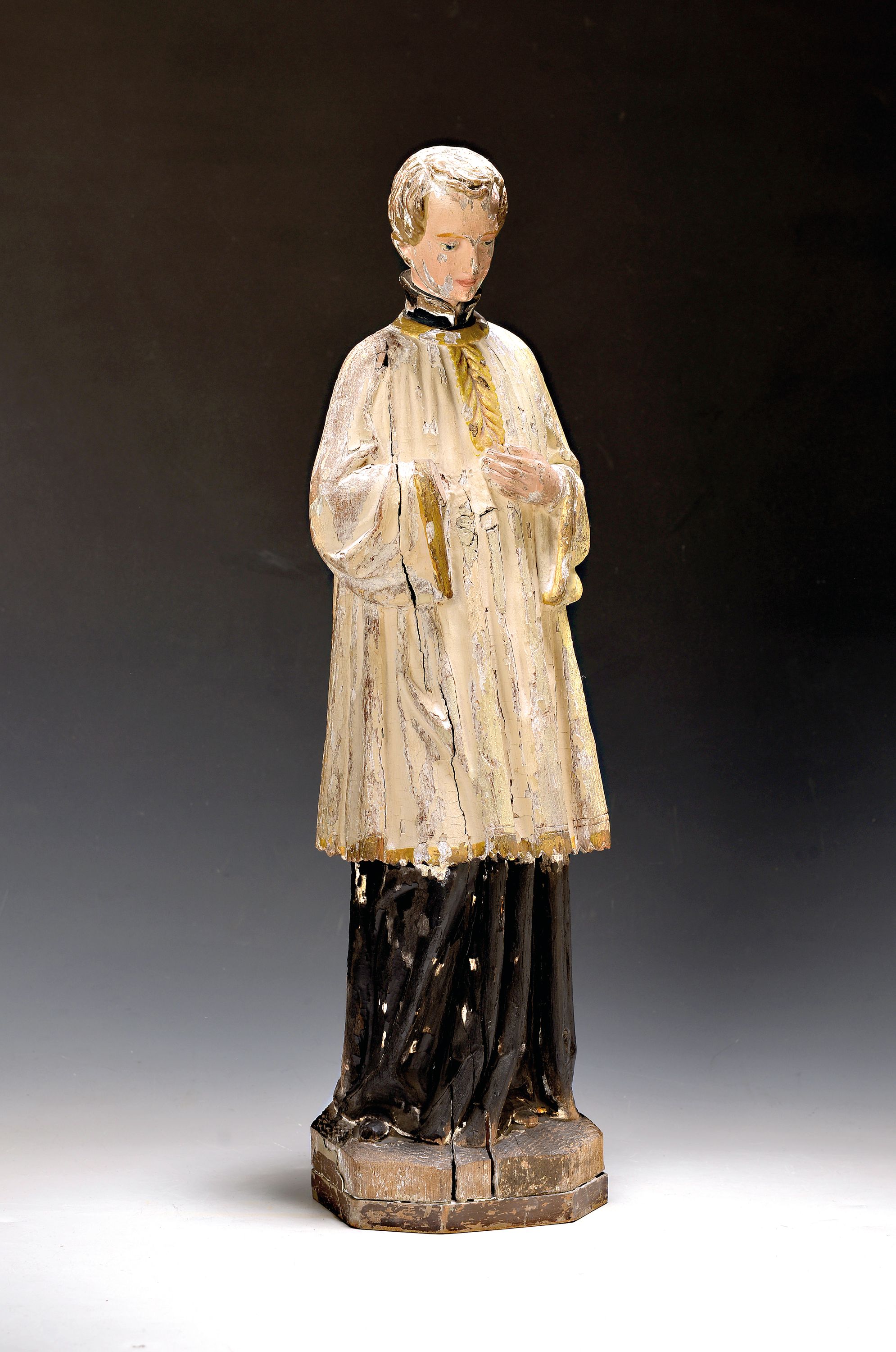 Bildschnitzerei des Heiligen Aloisius, Italien, 19.Jh., Holz geschnitzt, farbig gefasst,