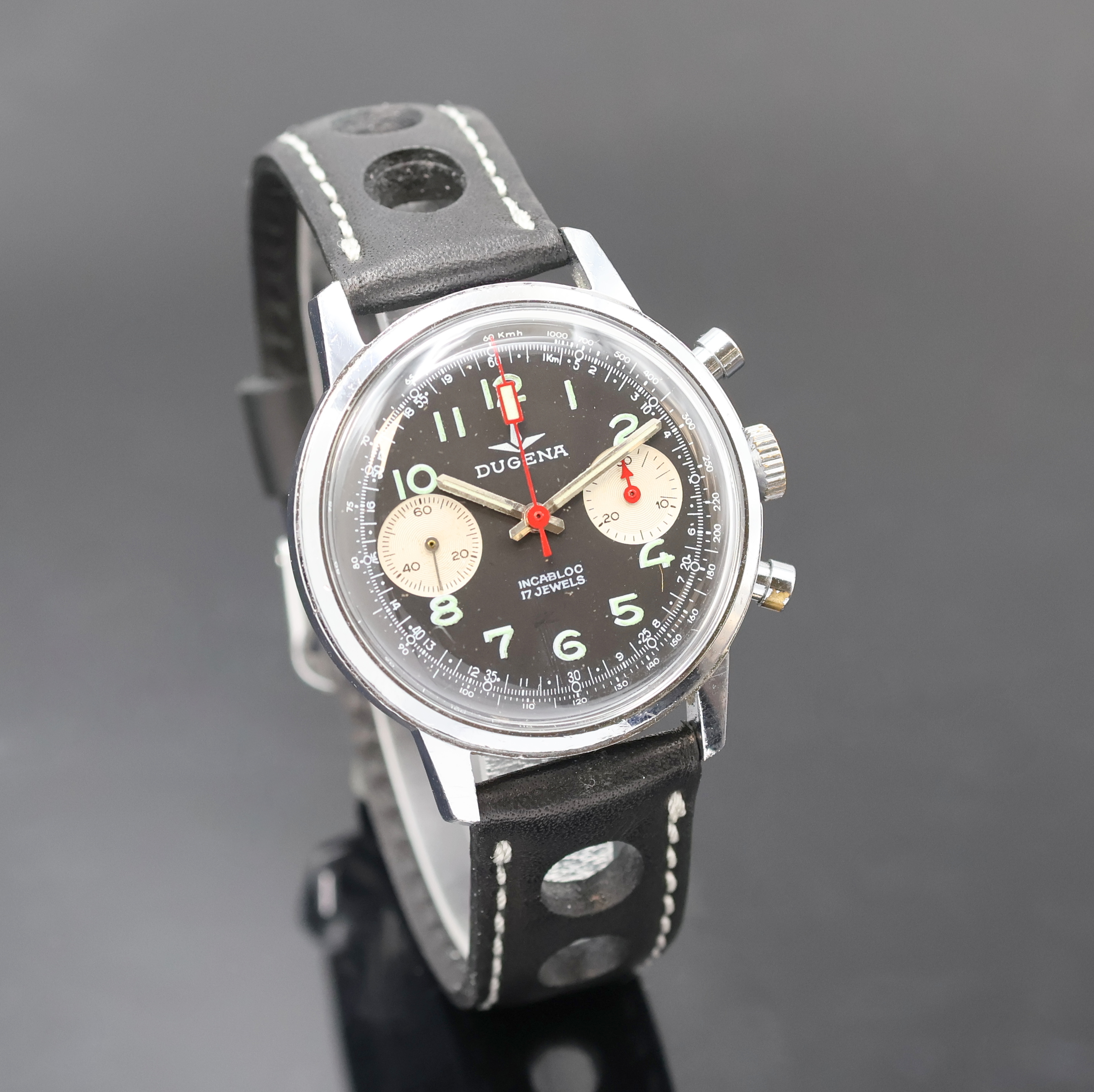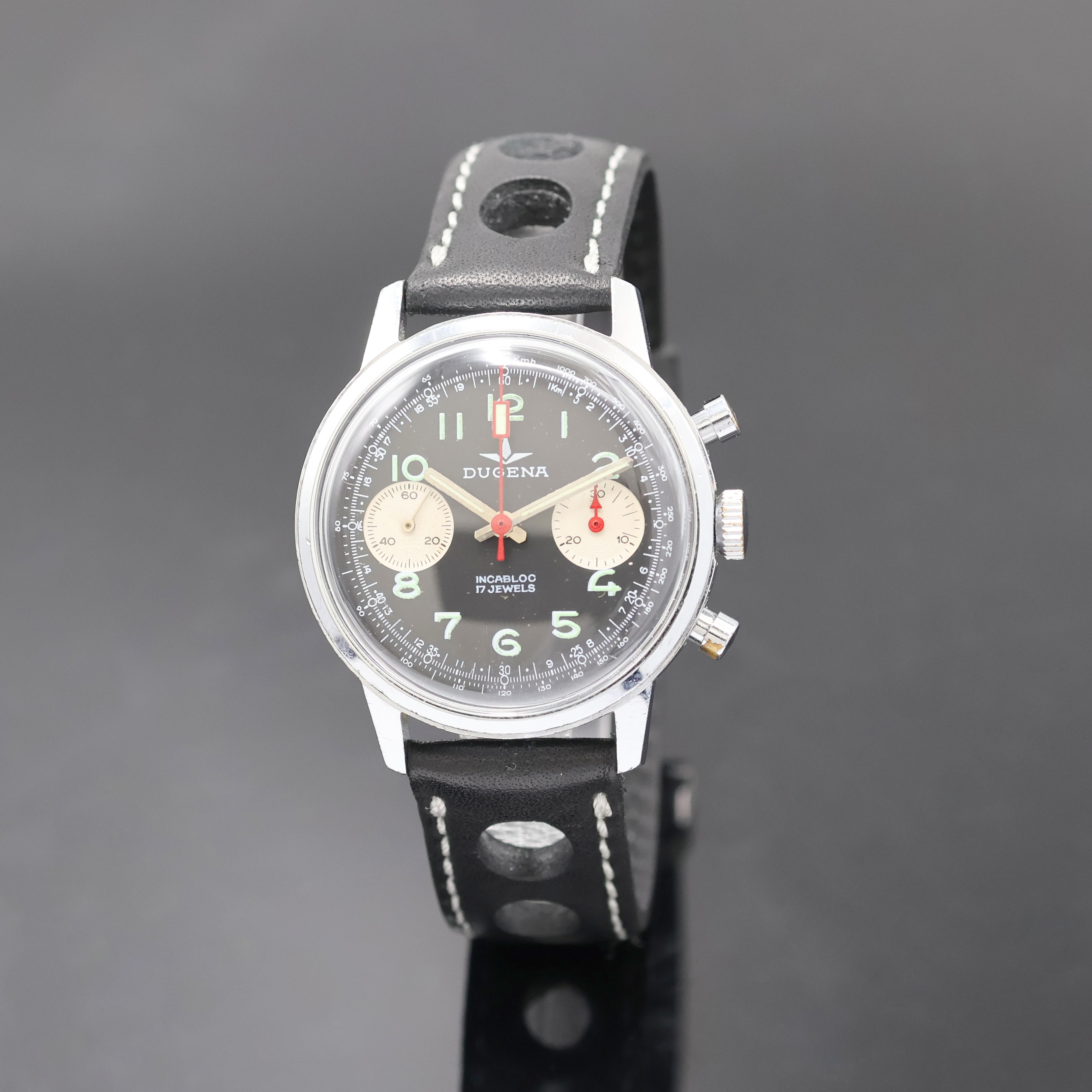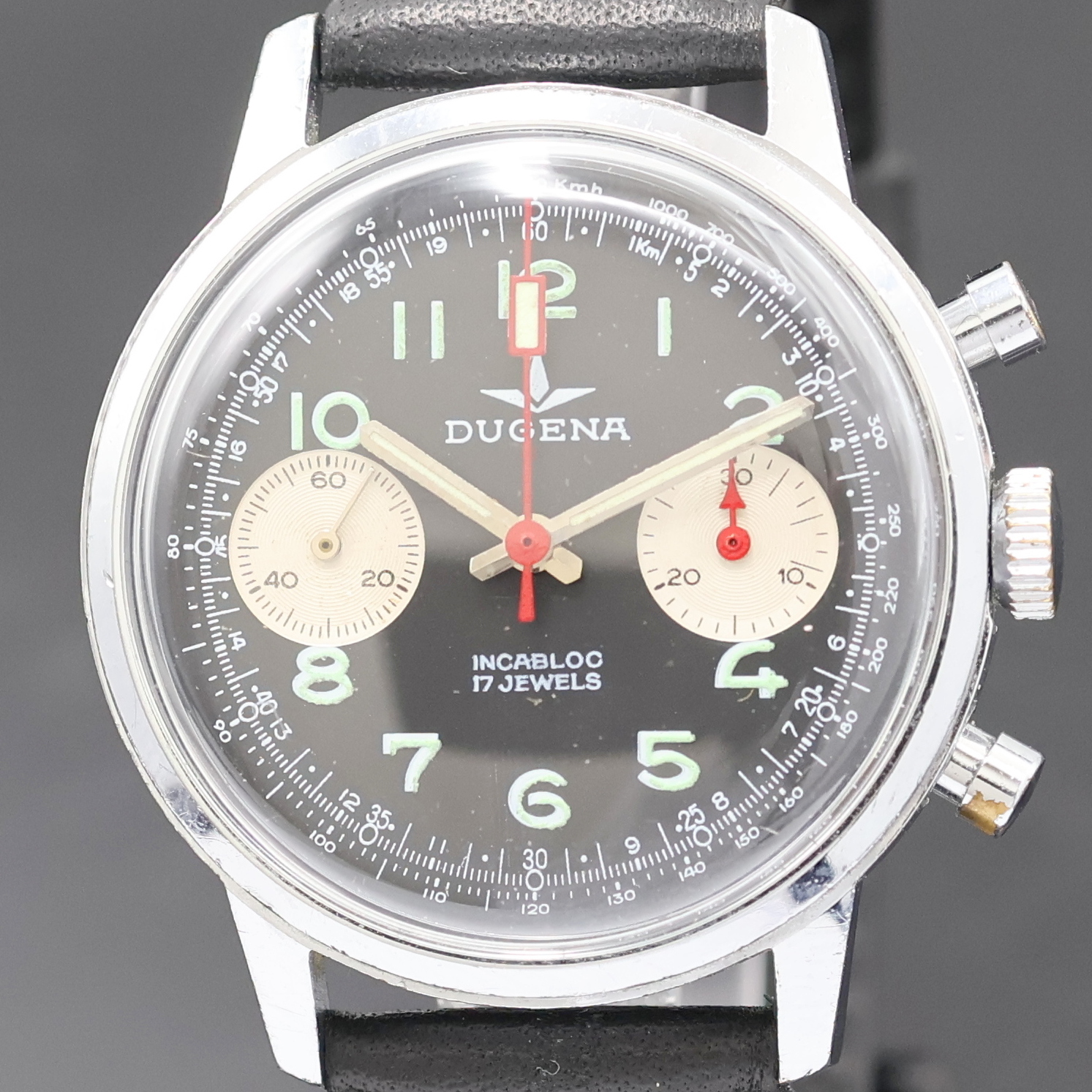 DUGENA Herrenarmbanduhr mit Chronograph, Handaufzug, Schweiz um 1970, verchr. Geh.