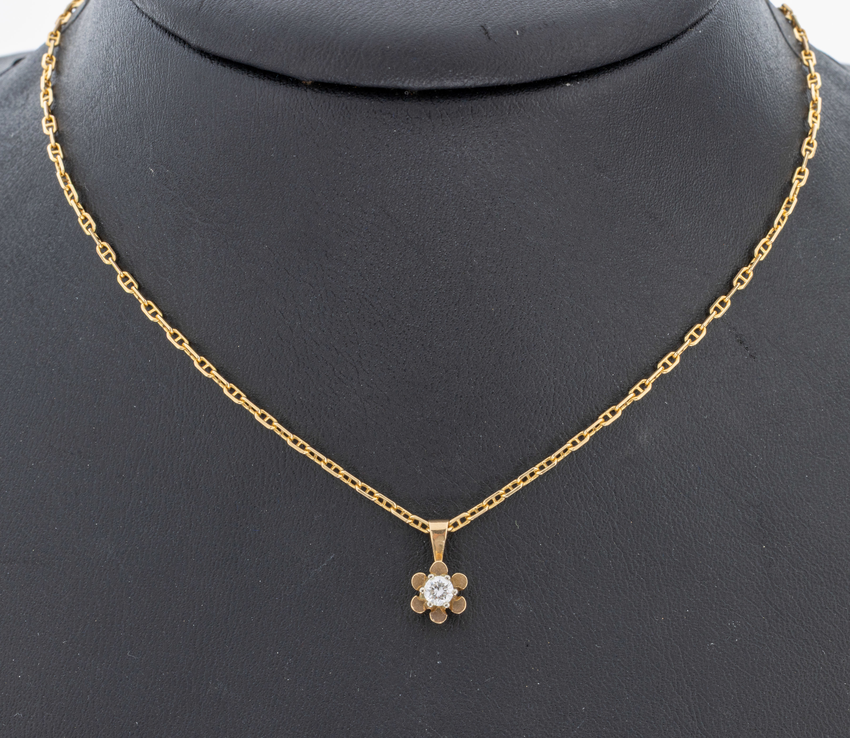 14 kt Gold Brillant-Anhänger, GG 585/000, Brillant ca. 0.12 ct Weiß/si, an Kette,