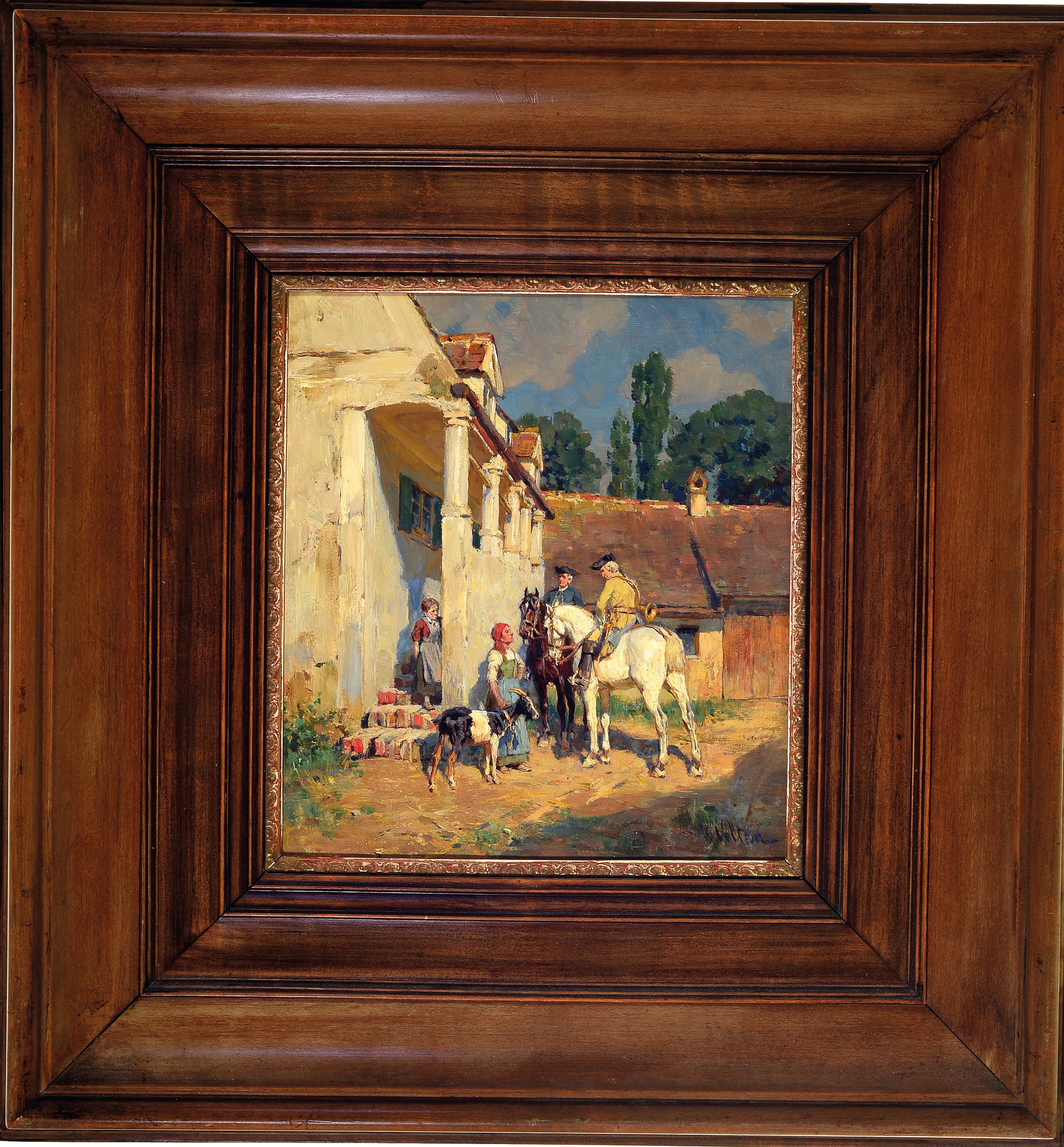 Wilhelm Velten, 1847 St. Petersburg-1929 München, zwei Reiter vor der Tür mit zwei