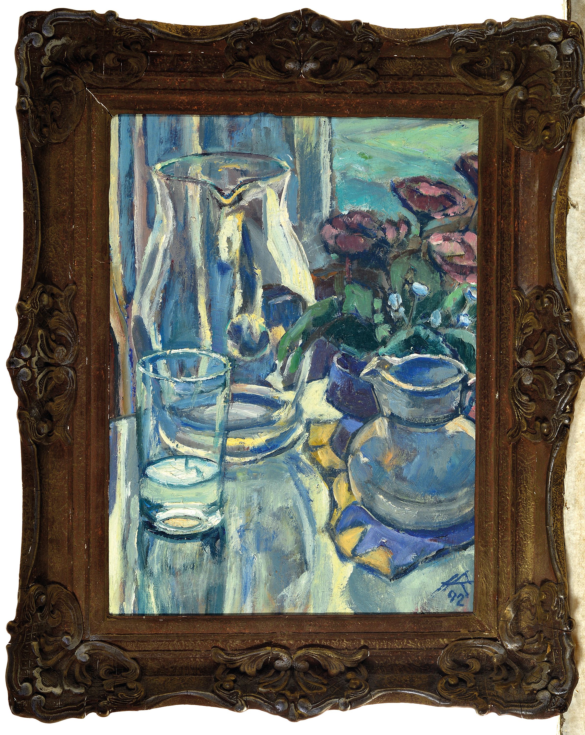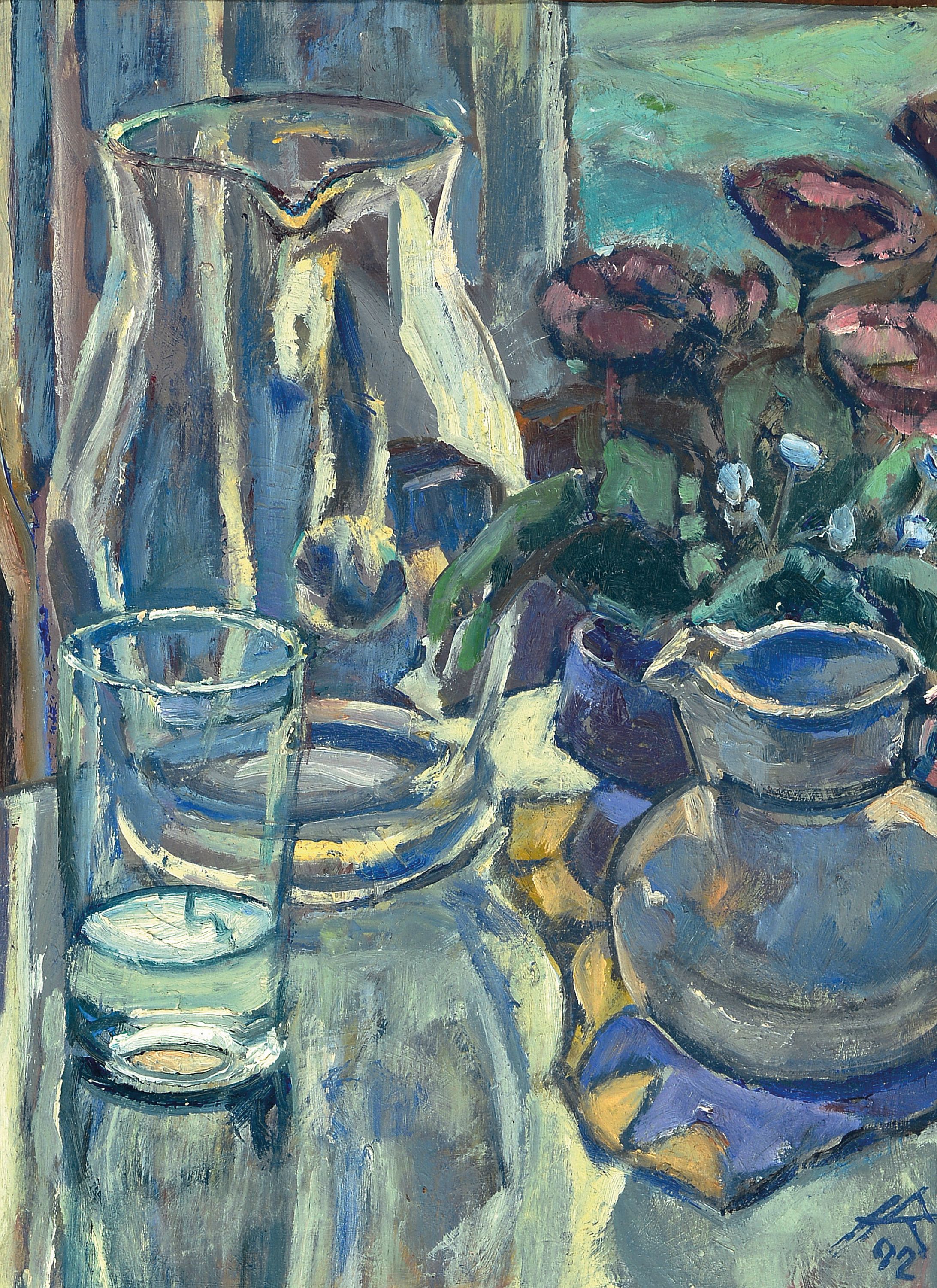 Heinz Reiss, 1923 Haßloch-2008, Stillleben mit Glas- und Keramikgefäßen am Fenster,