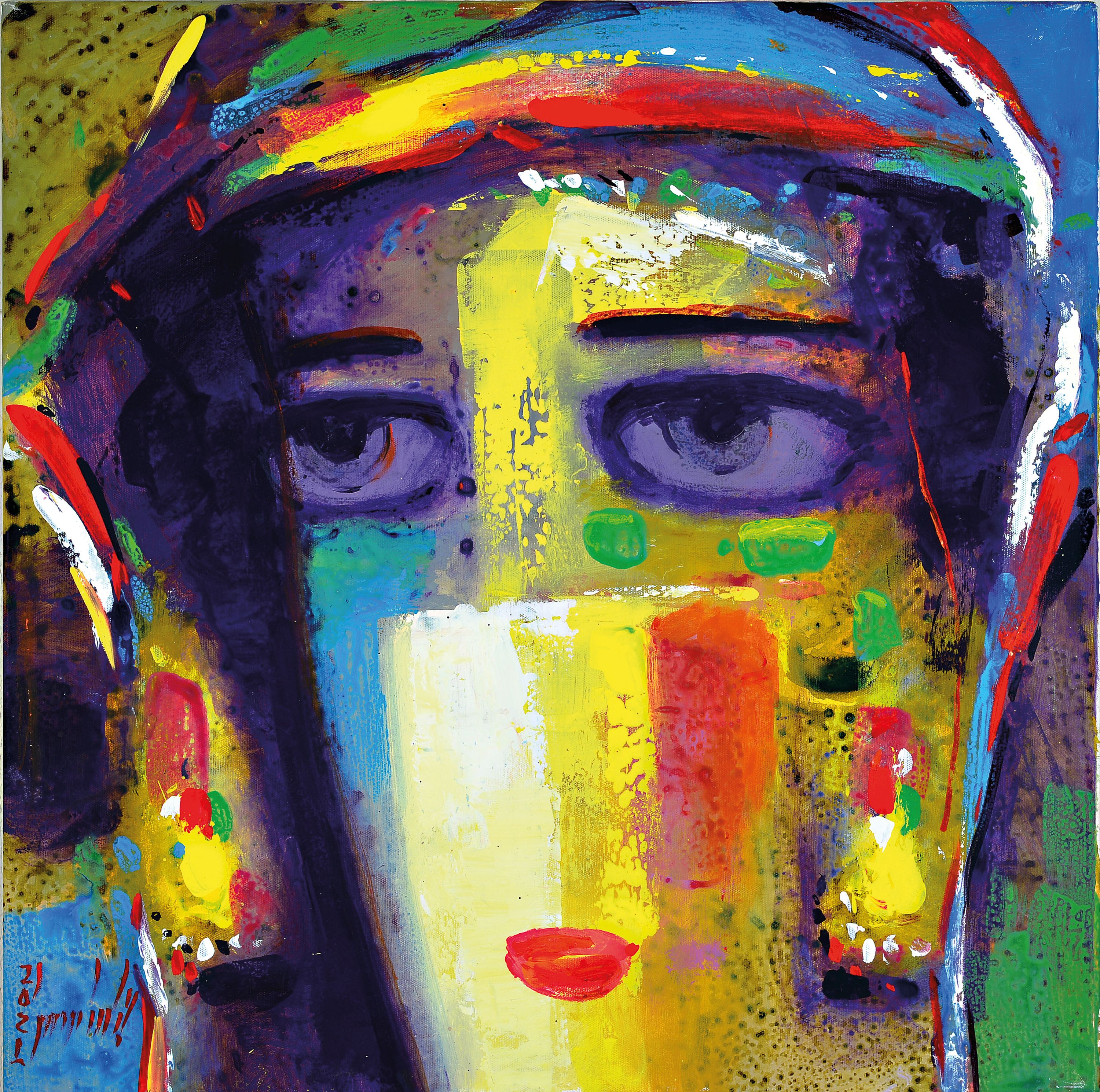Abbas Al-Mosawi, geb. 1952 Bahrain, 4 Gemälde "Köpfe", Acryl/Lwd, alle signiert,