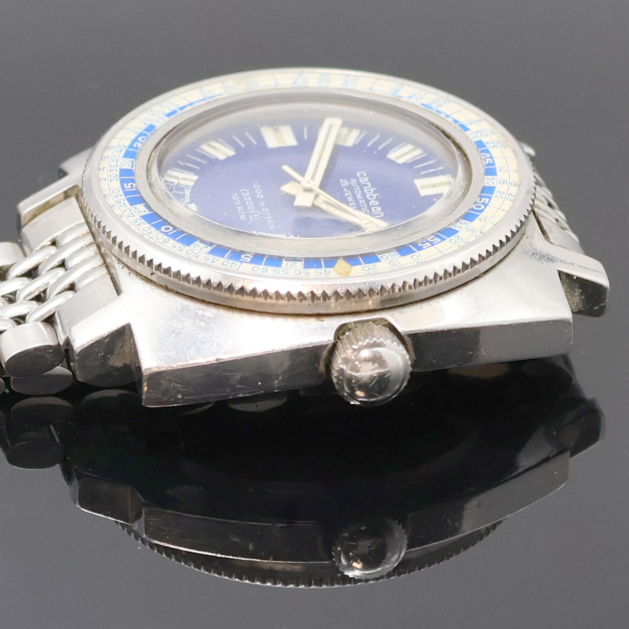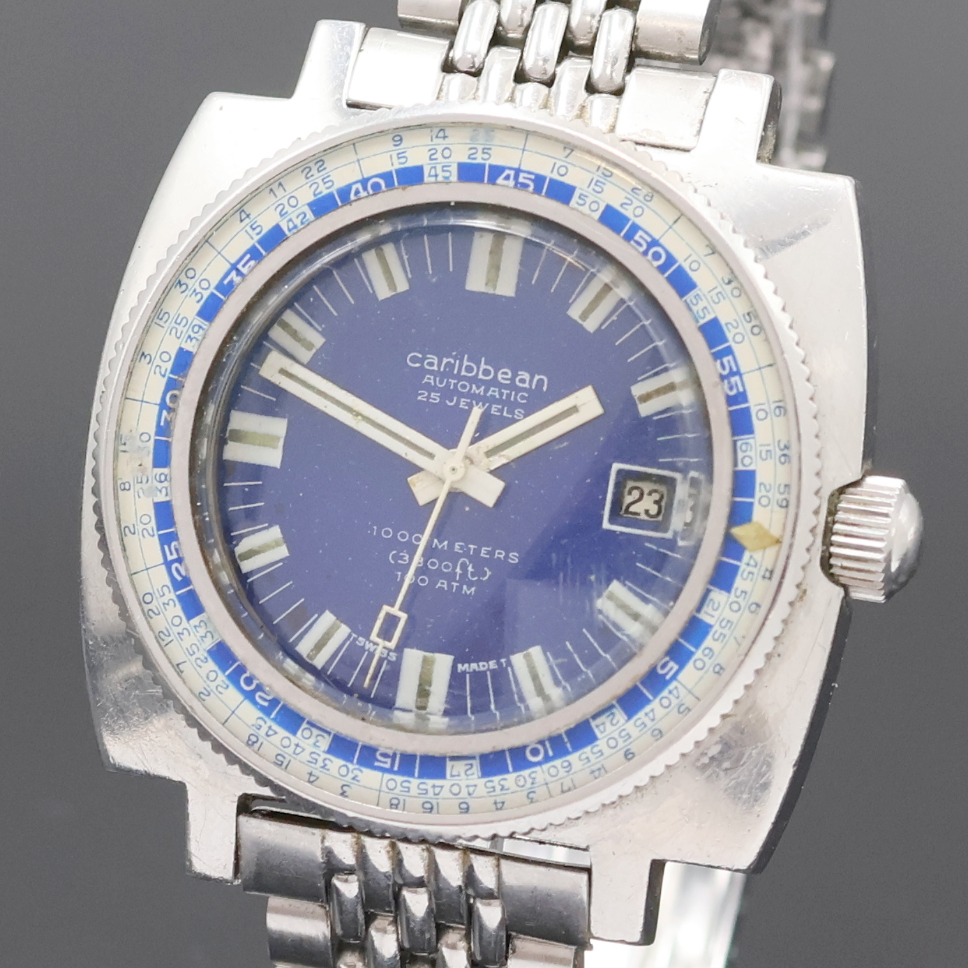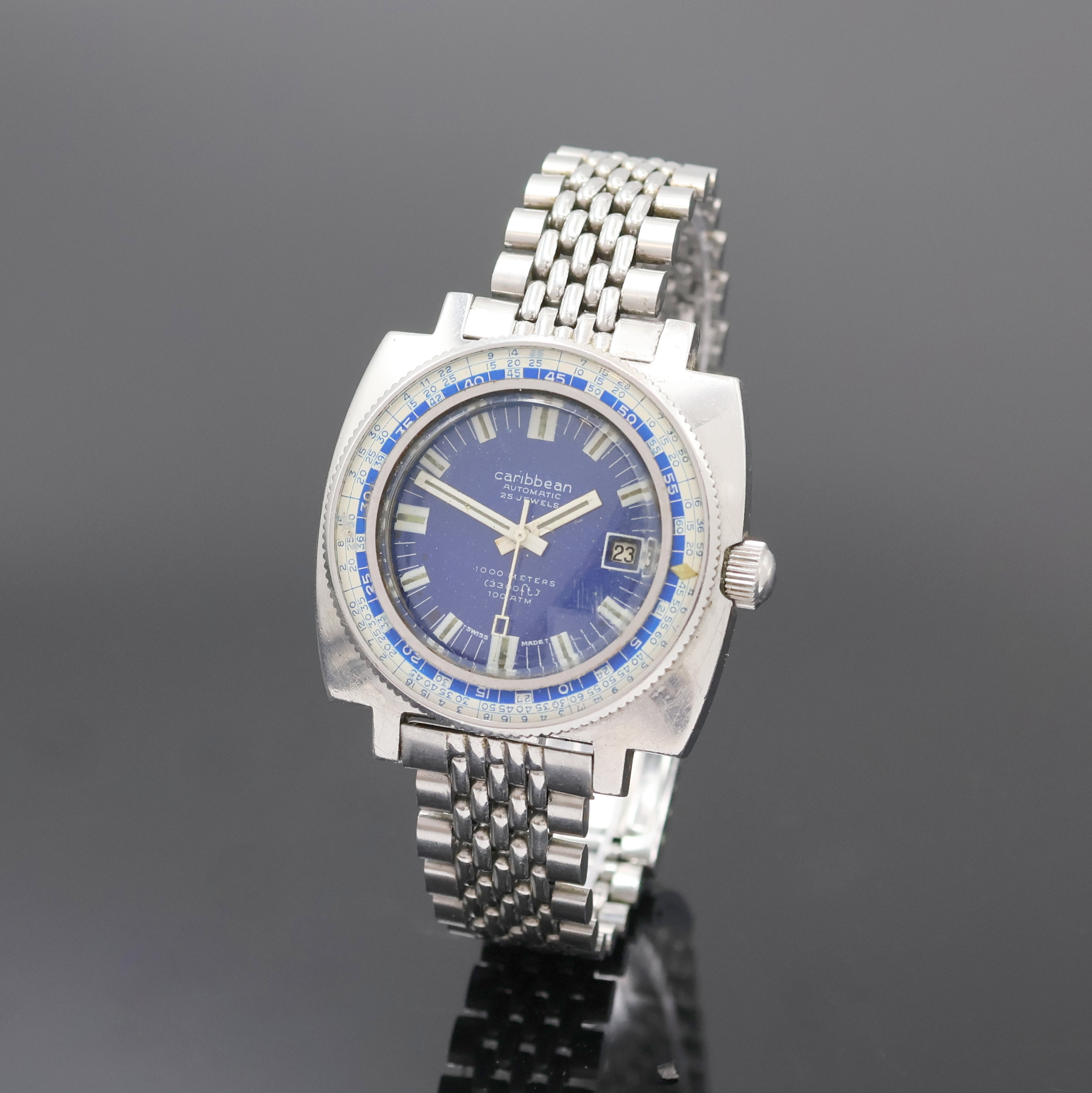 CARIBBEAN seltene Taucheruhr, Automatik, Schweiz um 1970, kissenförmiges monocoque