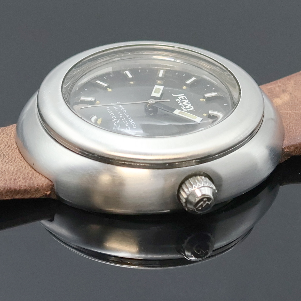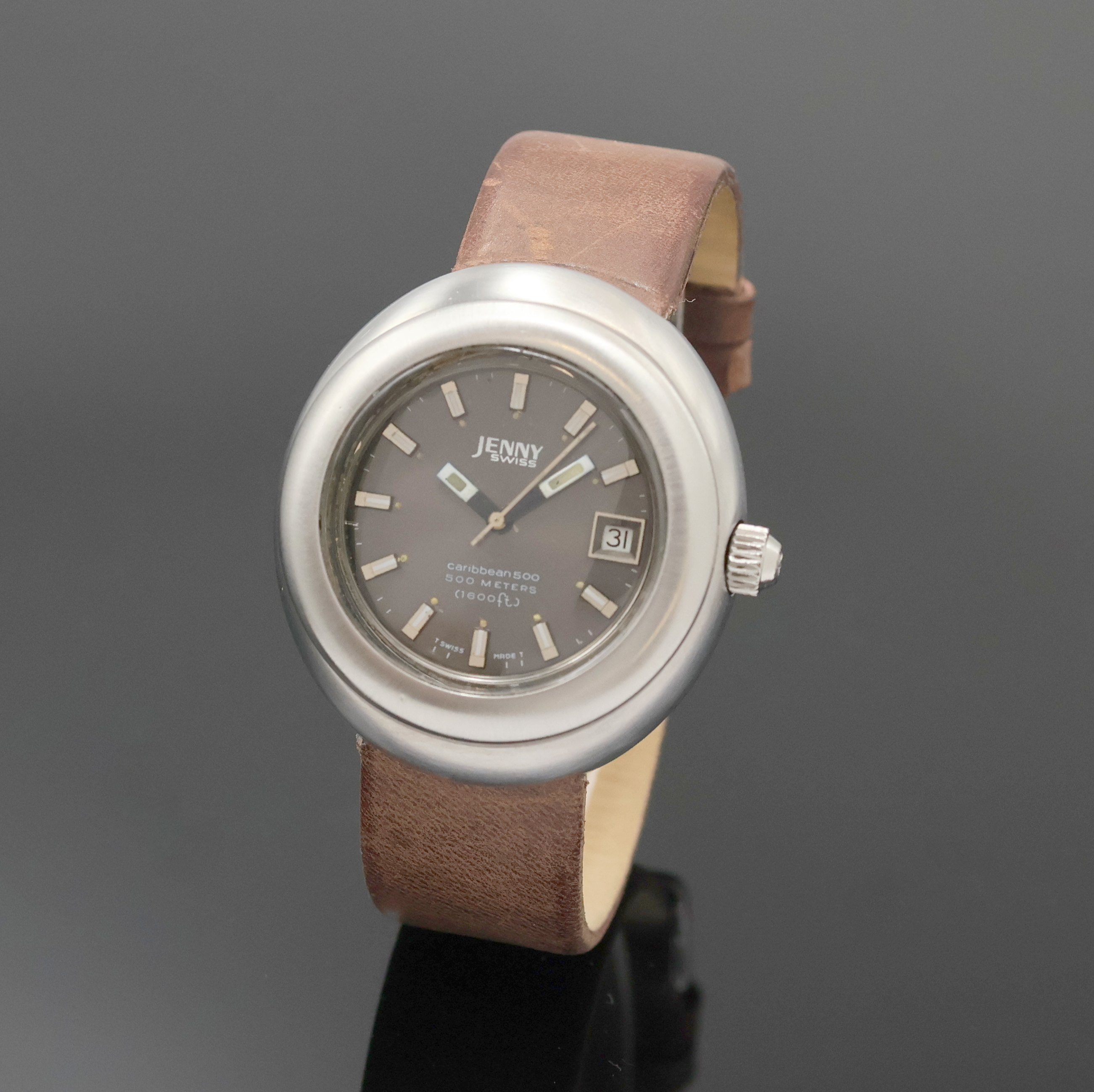 JENNY Caribbean 500 seltene Herrenarmbanduhr, Automatik, Schweiz um 1975, monocoque-Edelstahlgeh.,